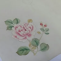 • 큰 꽃만 앞에 연하게 호분을 칠한 후 연지로 바림, 선을 긋습니다. 연지에 먹을 타서 끝부분만 아주 조금 바림하고 선을 긋습니다.