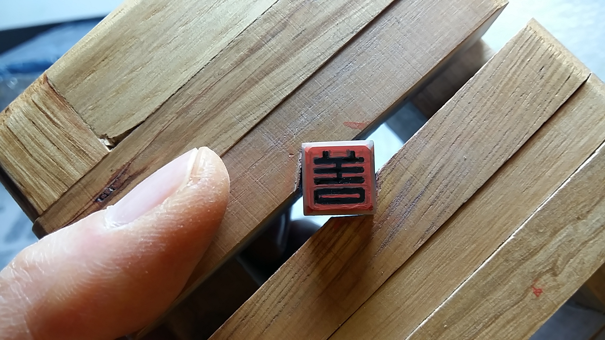 인상은 중간 크기로 5,000원 전각도는 각 2,000원으로 서령필방에서 구입하였다. 인상은 나무 절단면에 곰팡이 핀 것이 있으니 잘 보고 구입하여야 한다.