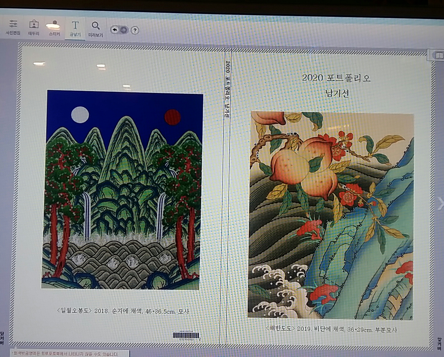 포트폴리오는 한글파일로 작성하고 pdf 로 만들어 온라인 제출 하였고, 실물은 찍스에서 A4 표지포함 18면 포토북으로 주문하였습니다.