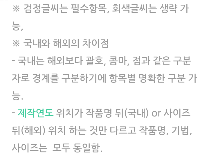 제목, 작가, 크기, 기법과 재료, 제작시기 등을 표시 하는 것을 캡션 이라고 하는 거였습니다.