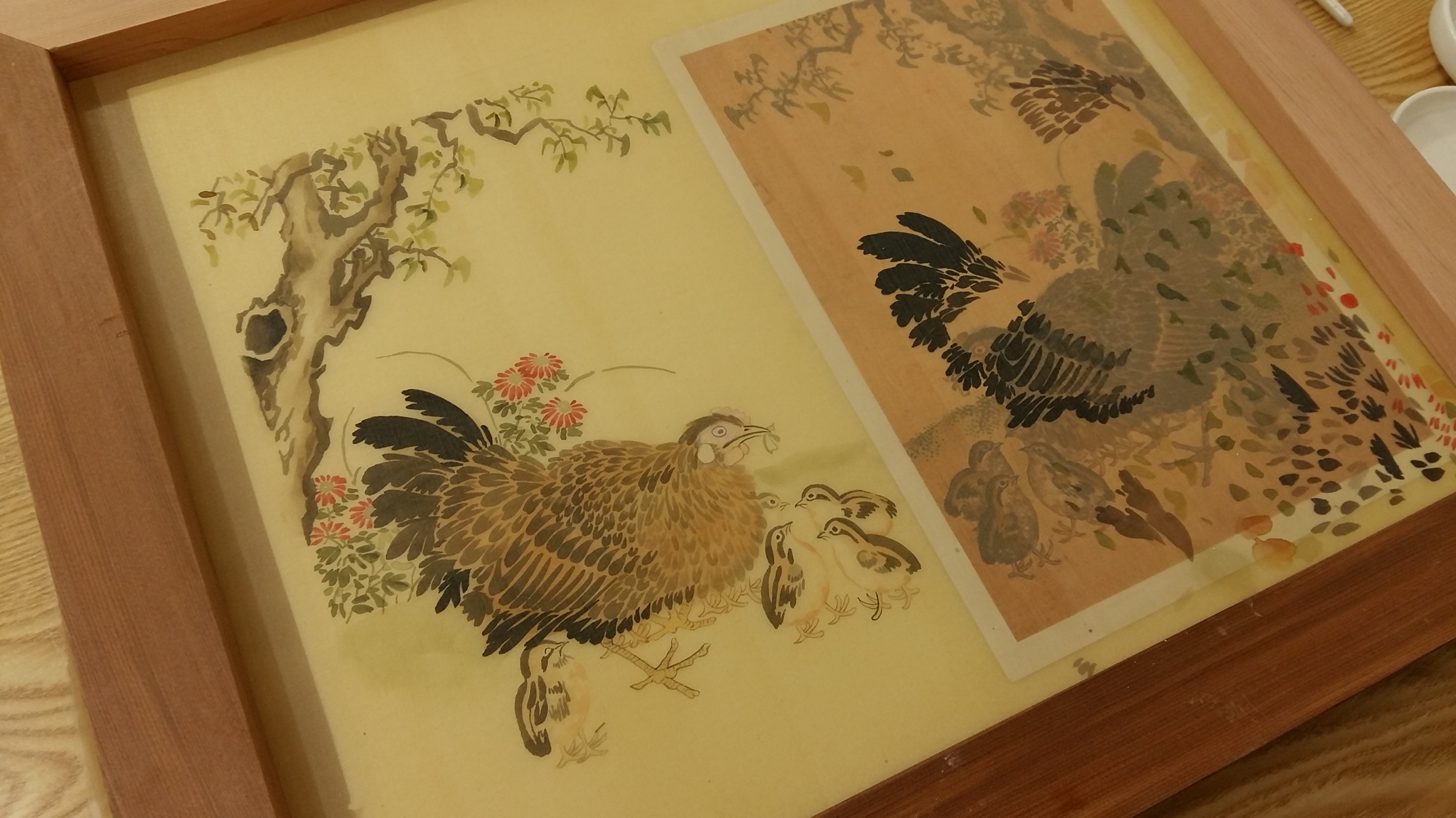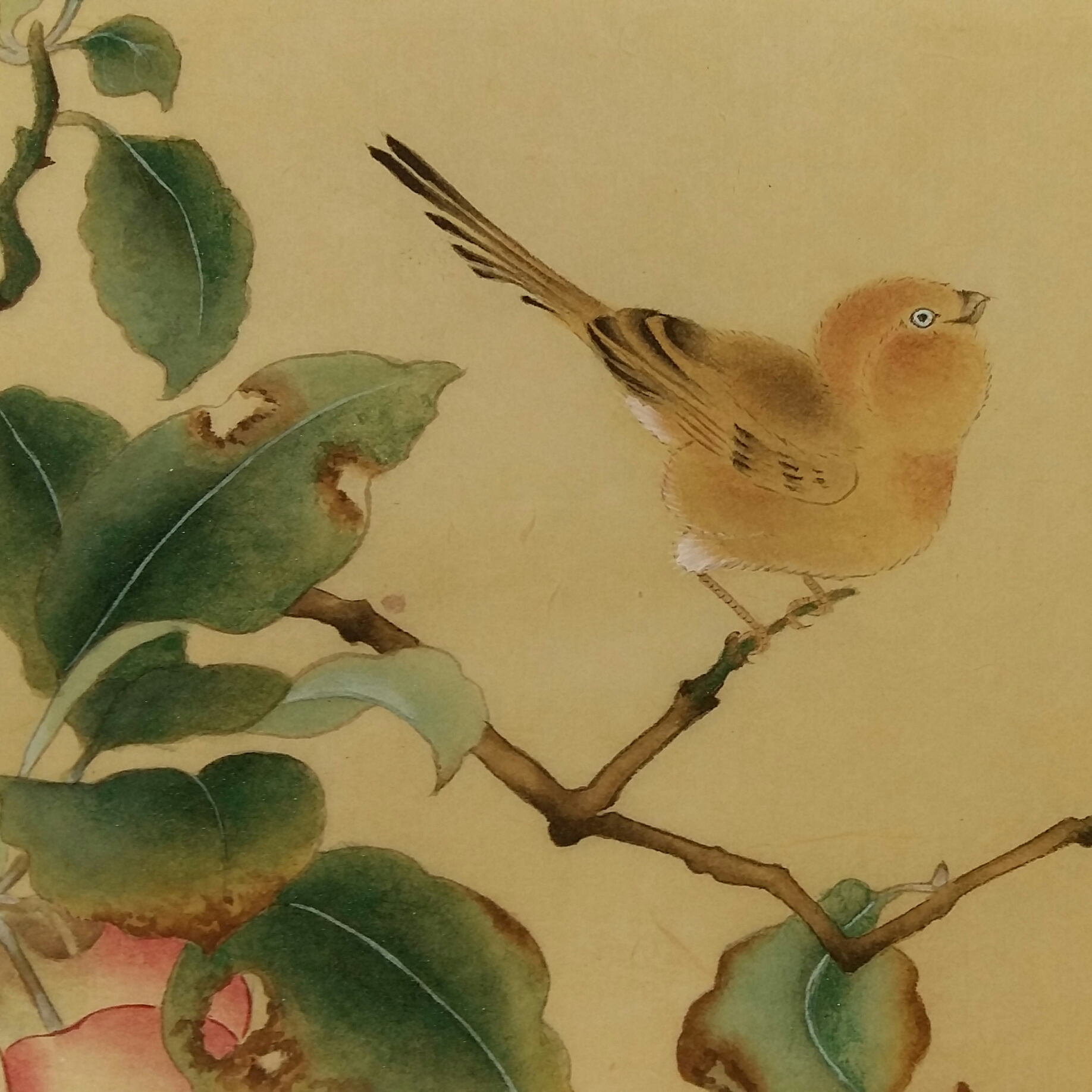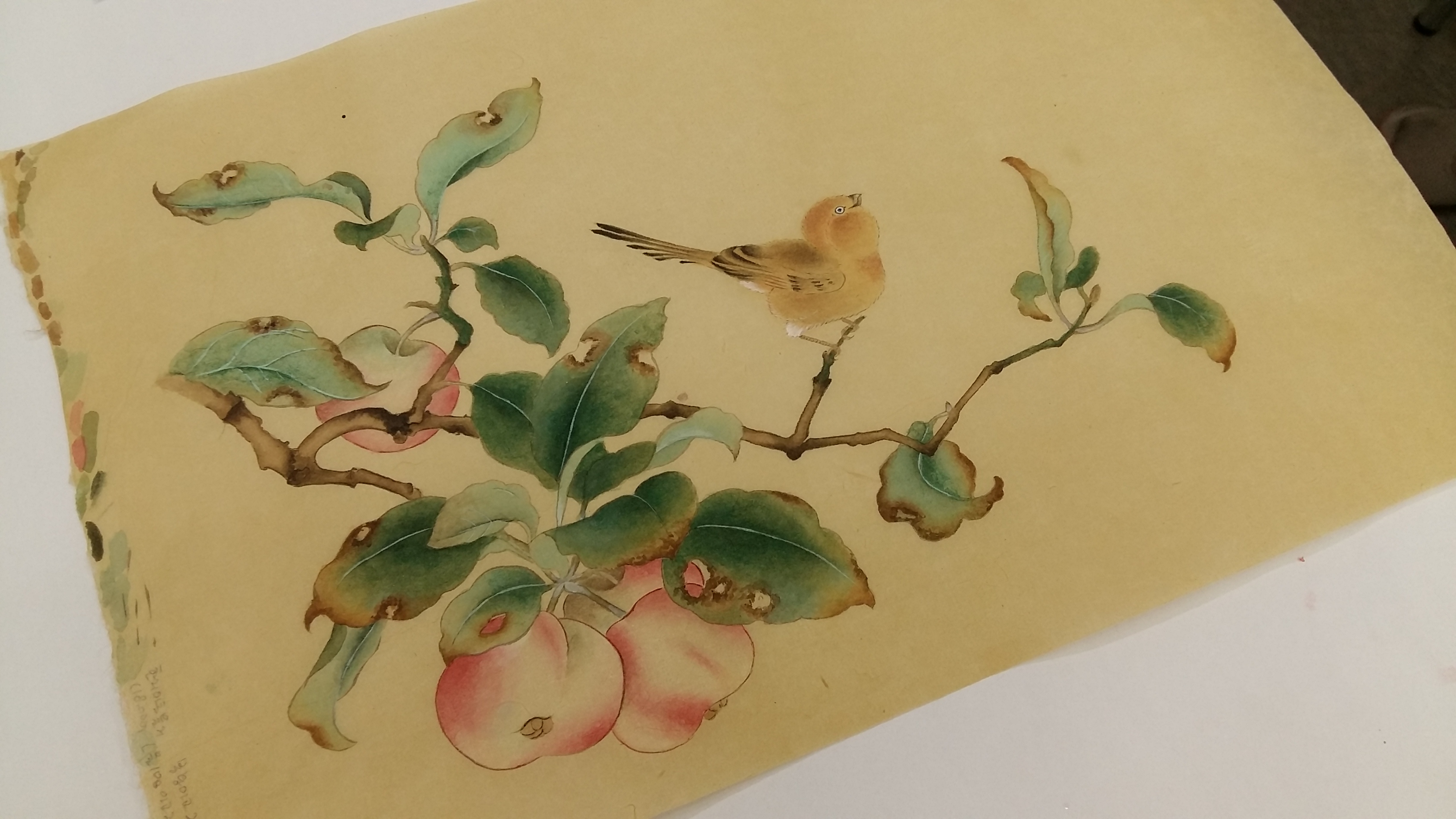 원화 : 과숙래금도 (사과나무에 뱁새) (옻지)