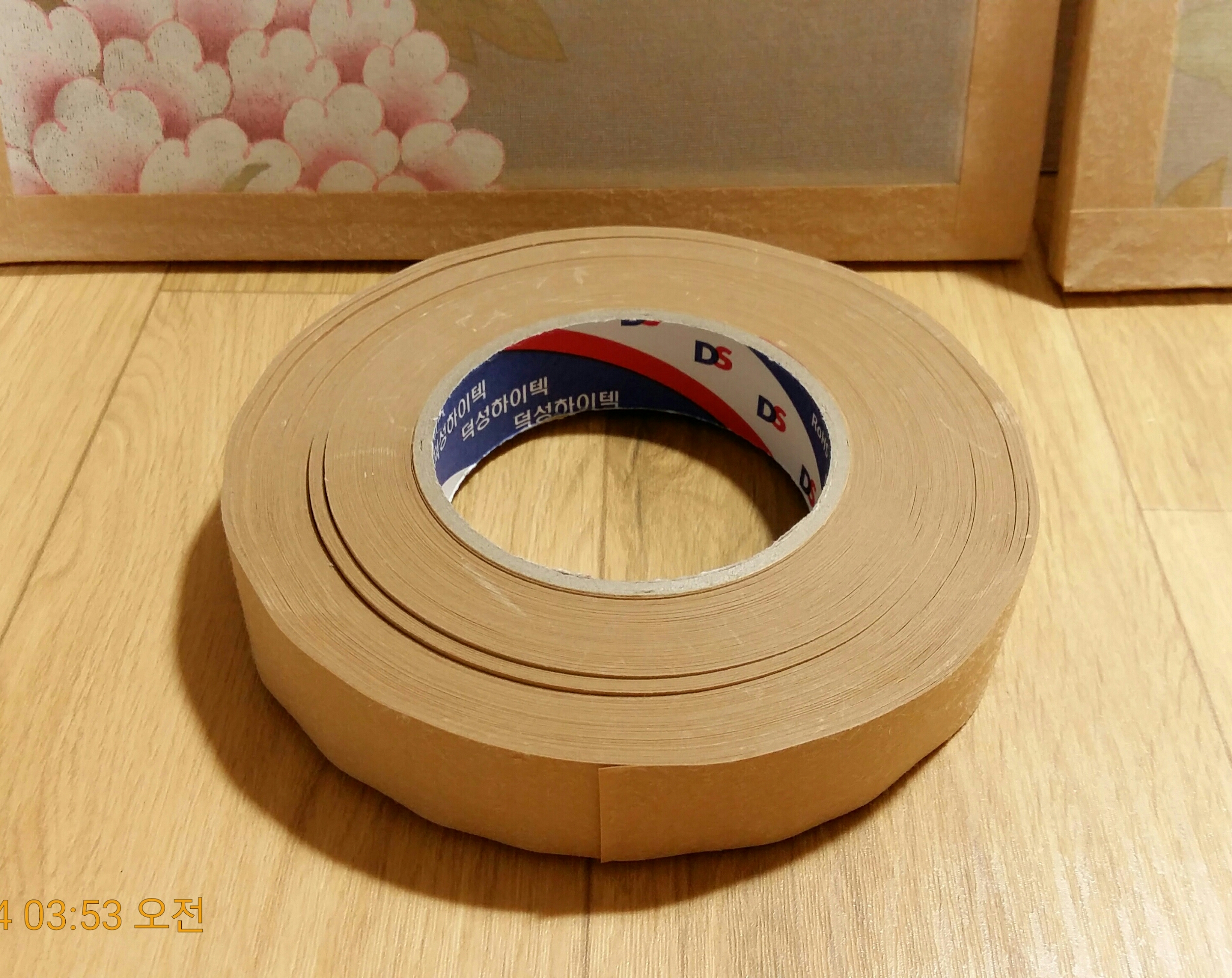 배접한 그림을 판넬에 붙인 후, 옆면에 붙이는 종이테잎 입니다.