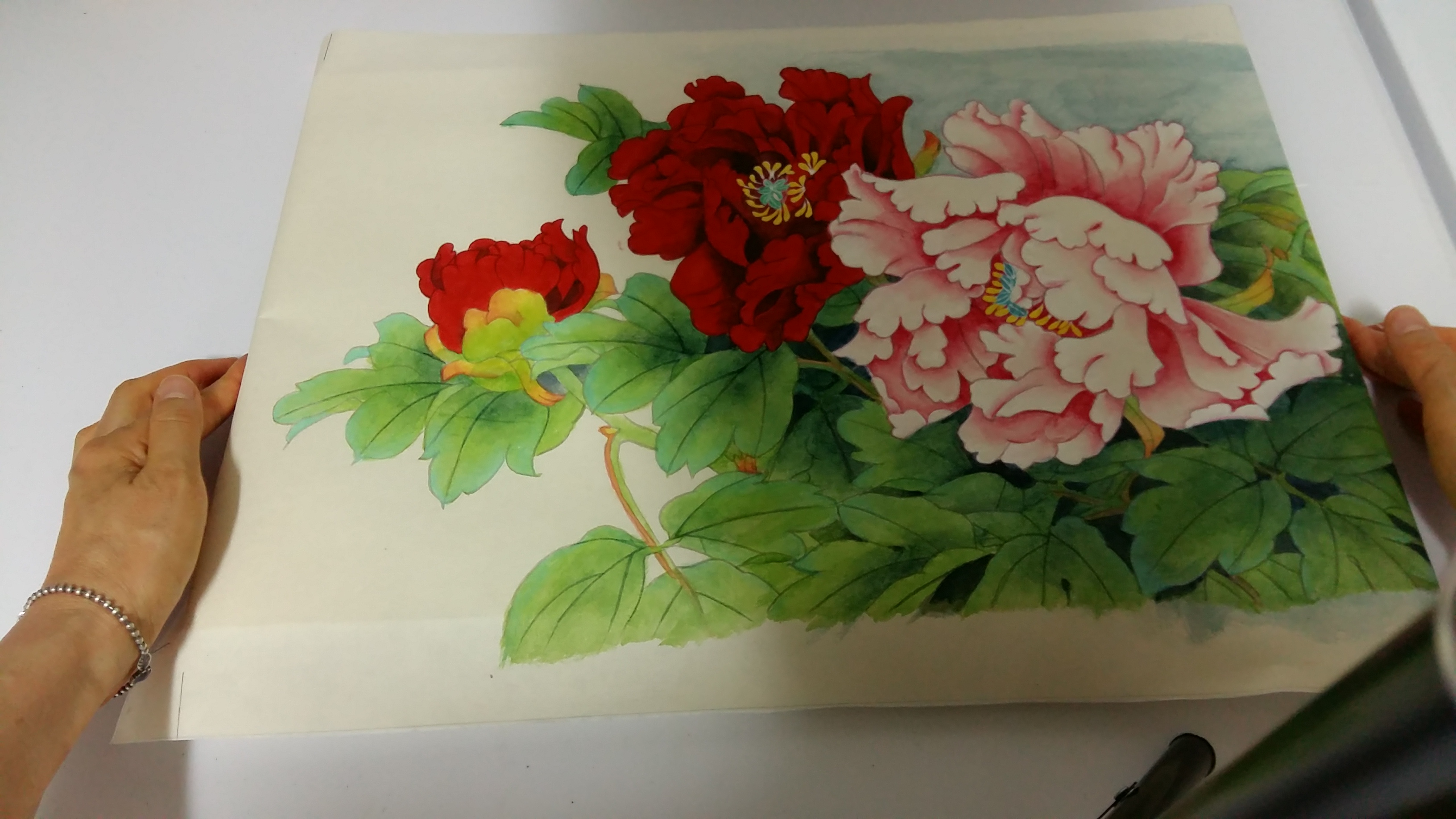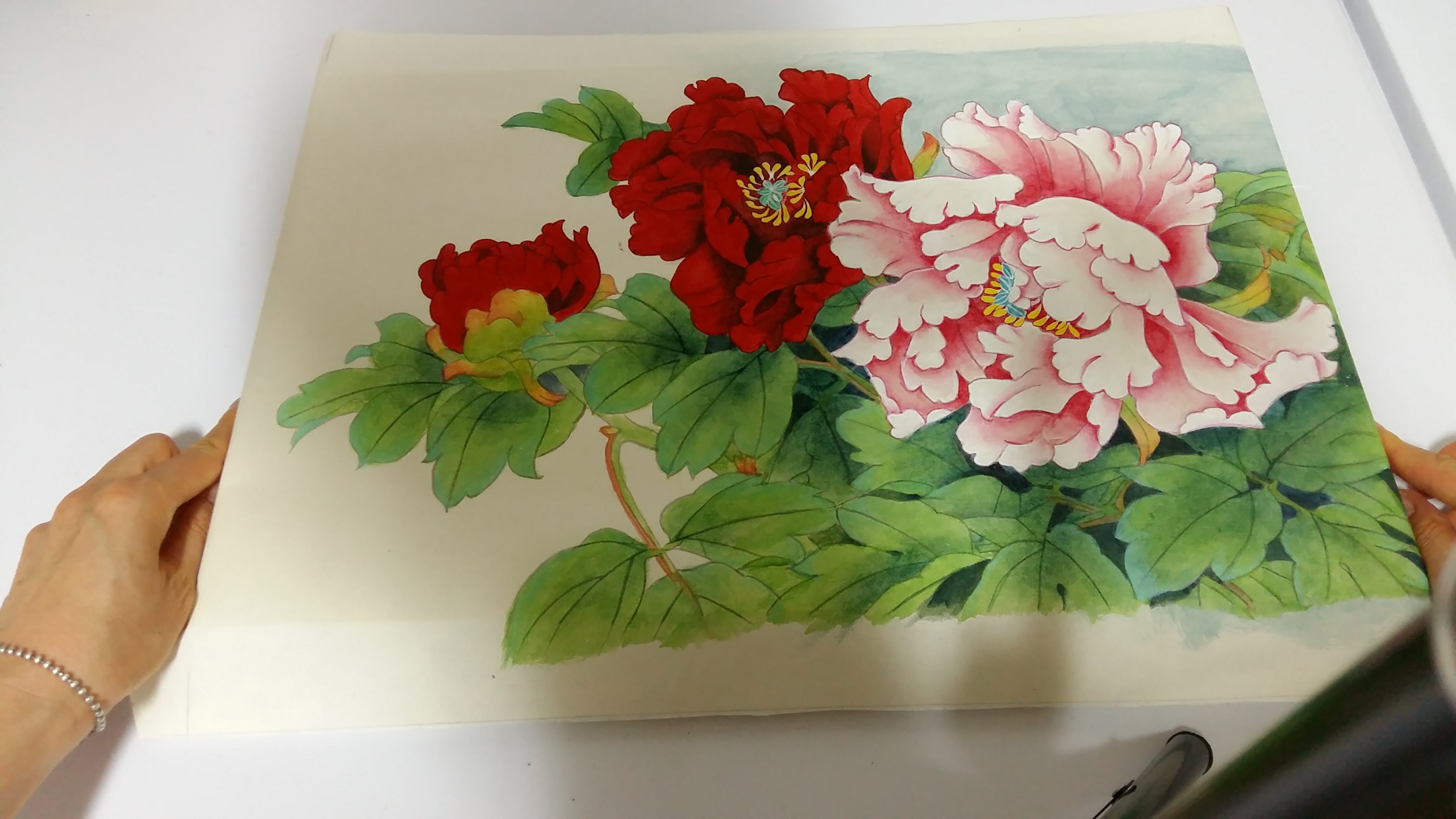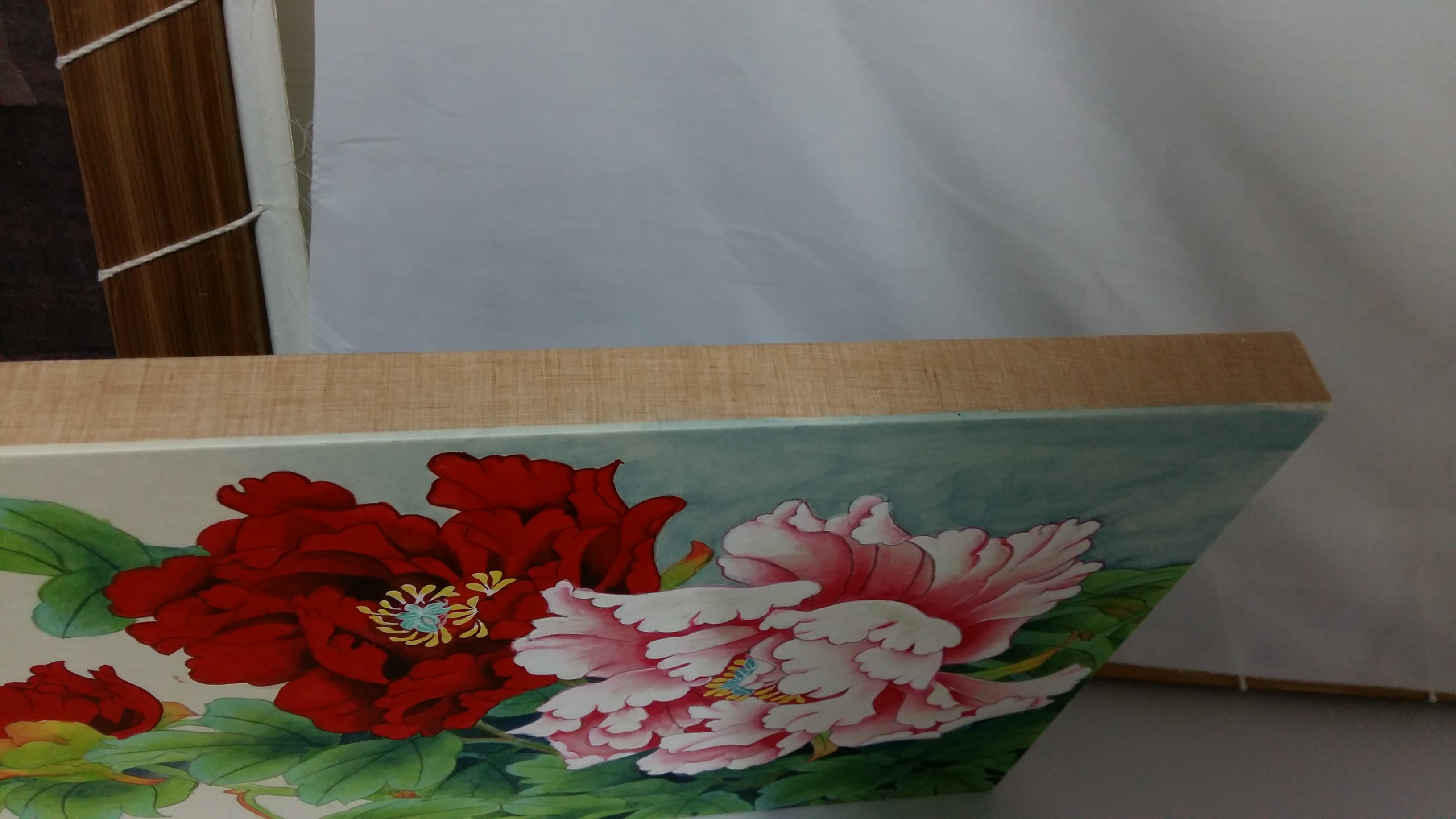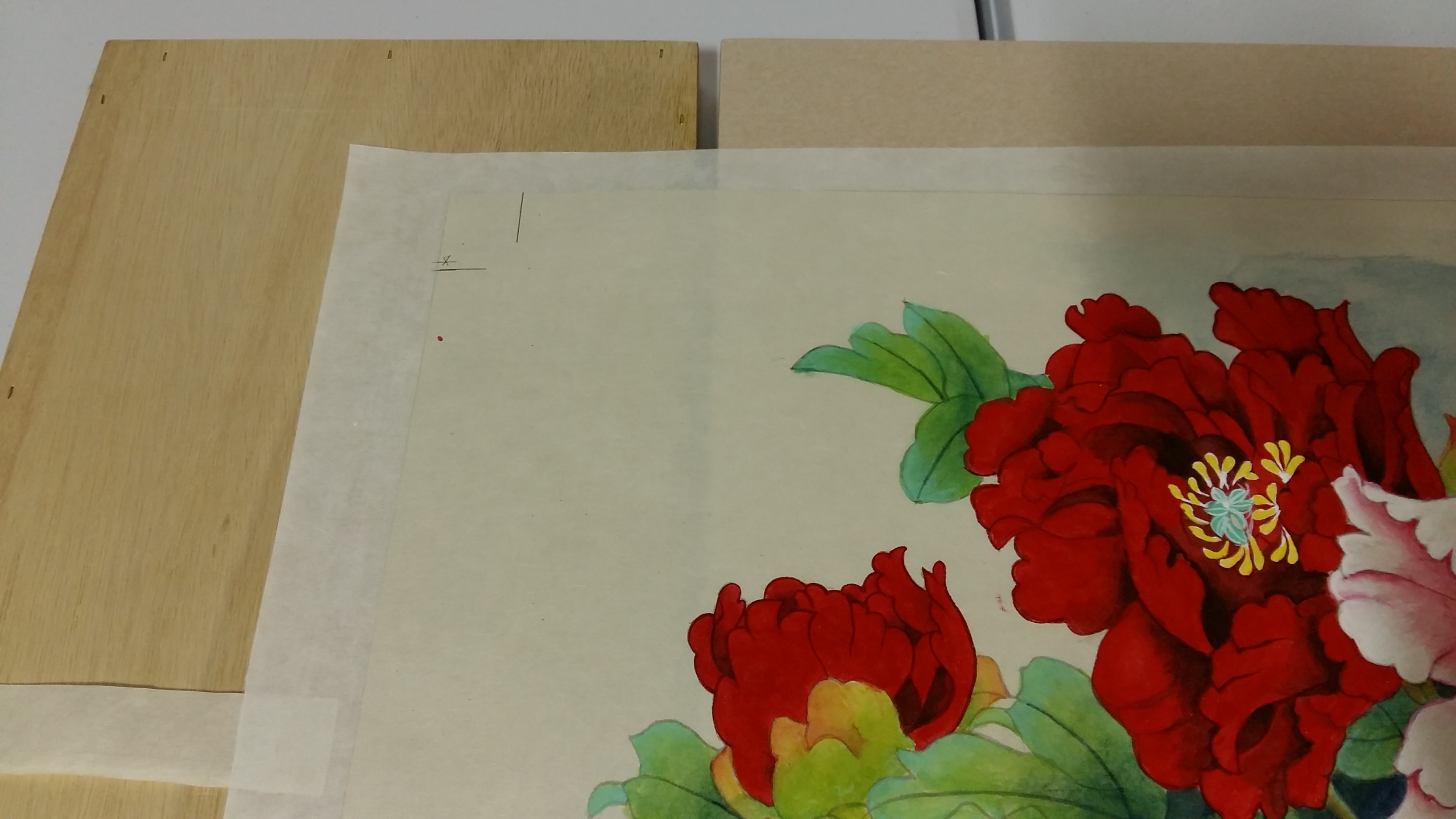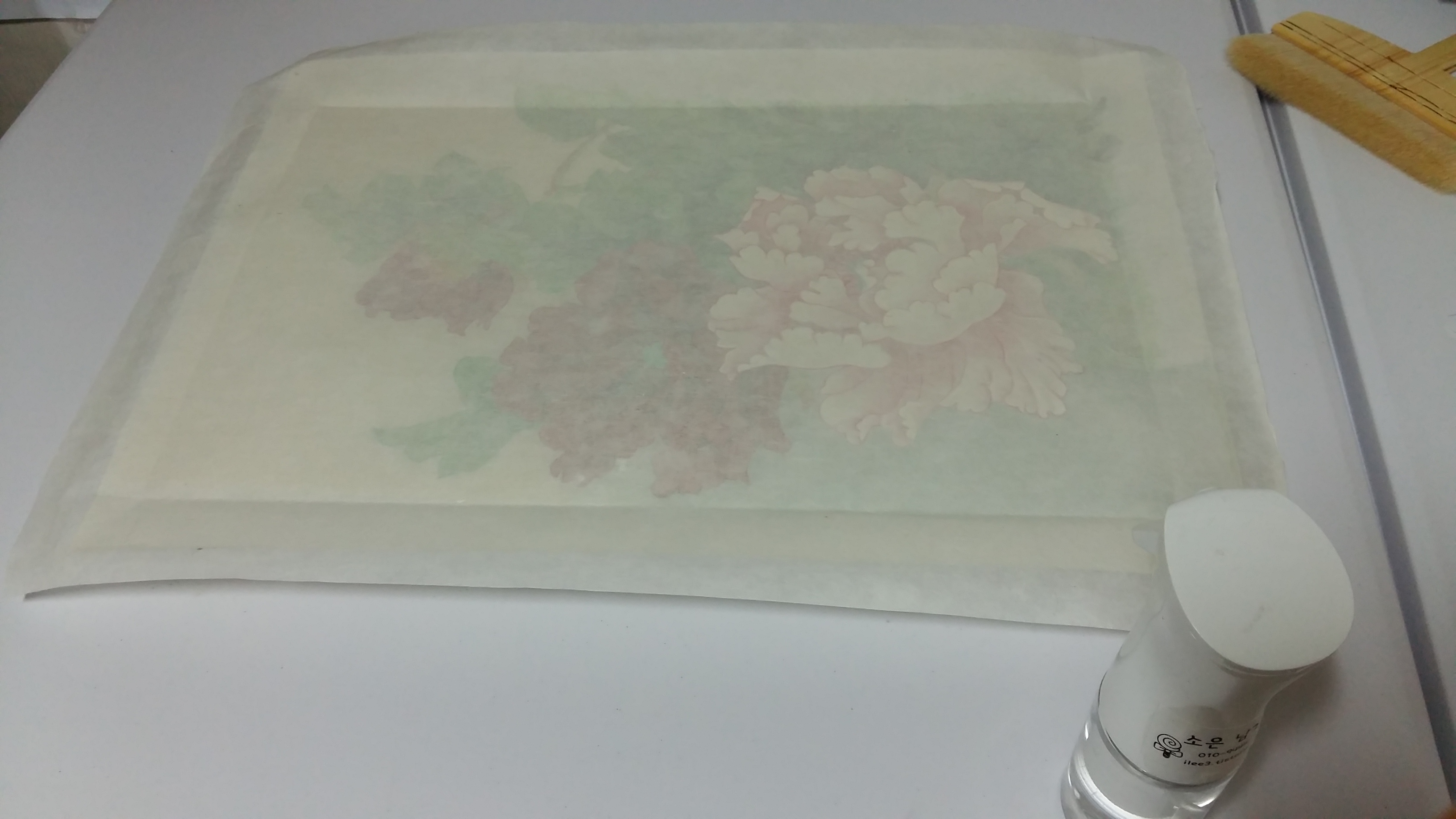 지난번에 배접해 두었던 수강생이 그린 공필화 모란도로 판넬형 액자를 만들어 보겠습니다.
