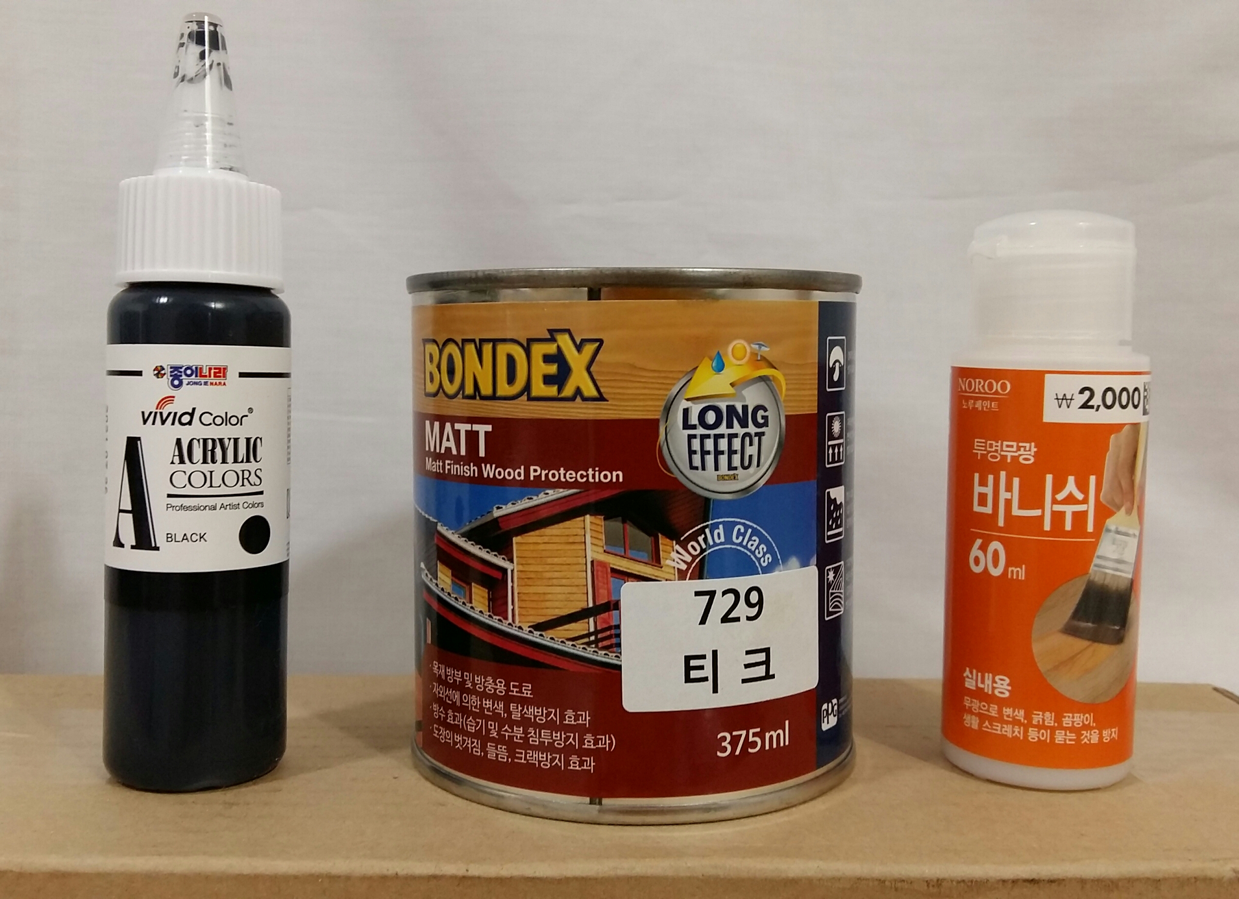 그리고 다이소에서 산 투명무광바니쉬를 3번 칠했는데 색이 이쁘지 않아서 오일스테인을 인터넷 쇼핑으로 구입하였습니다.