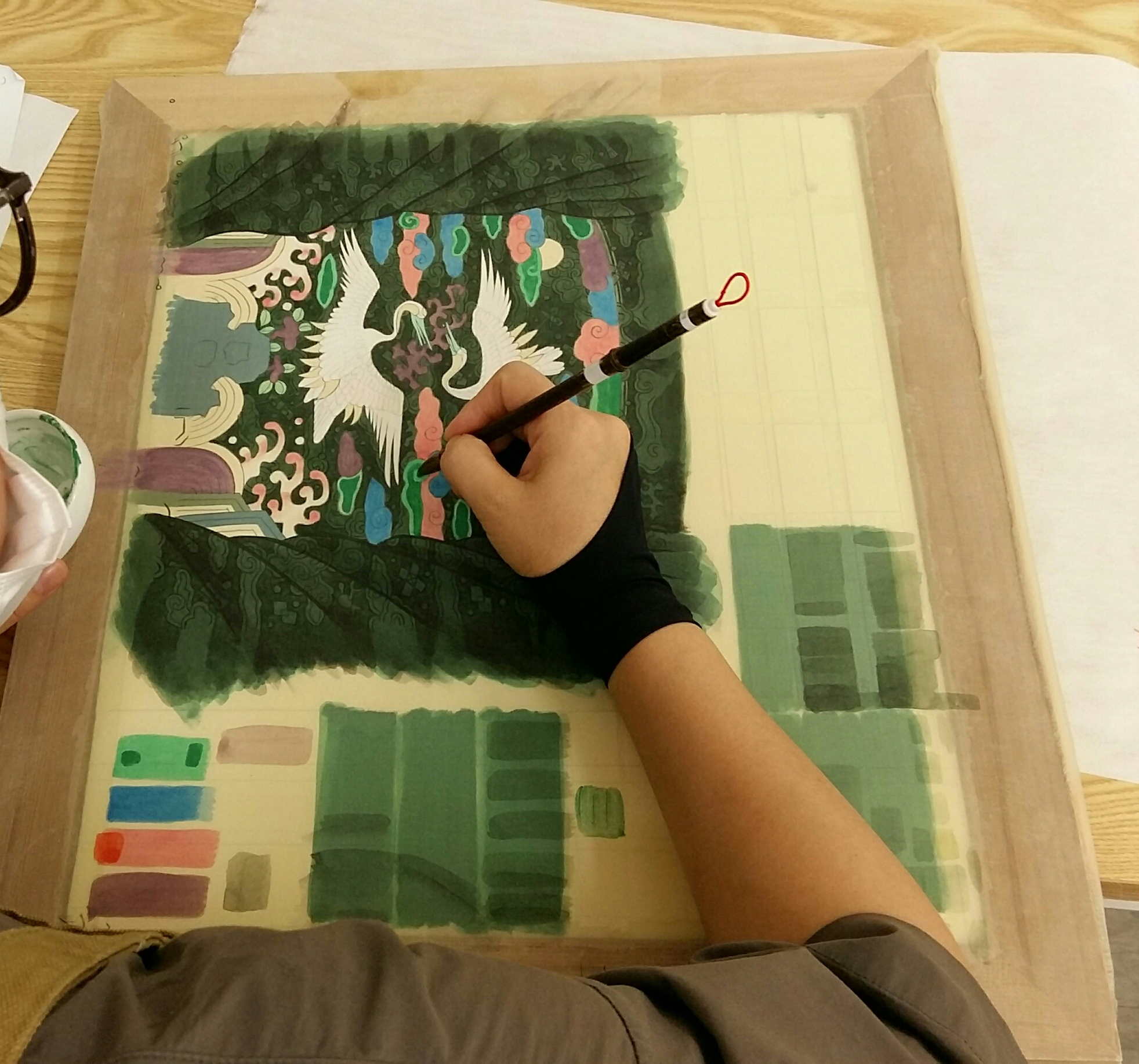 조선시대의 관복 초상화 그림 중 흉배 부분을 배우셨습니다.