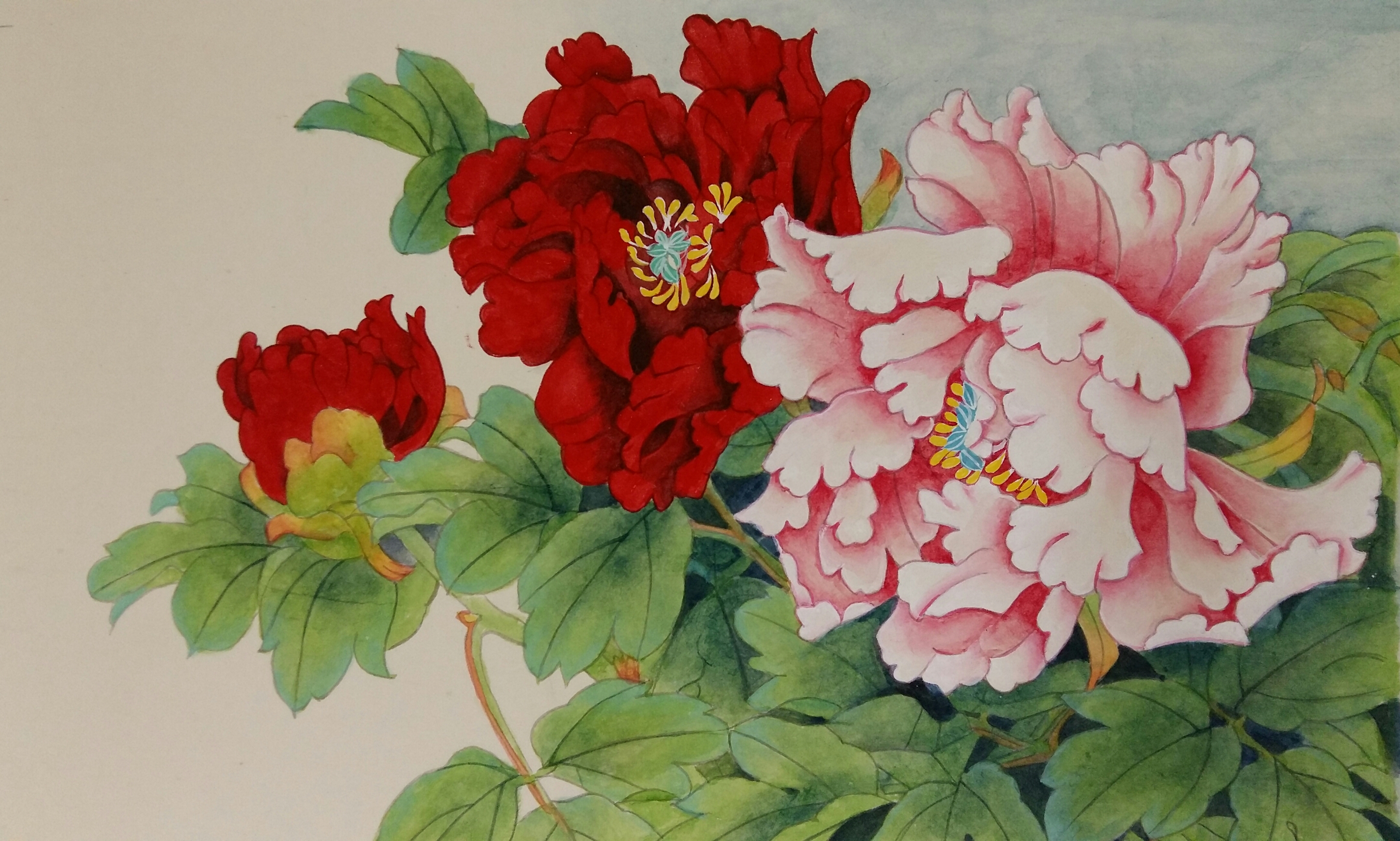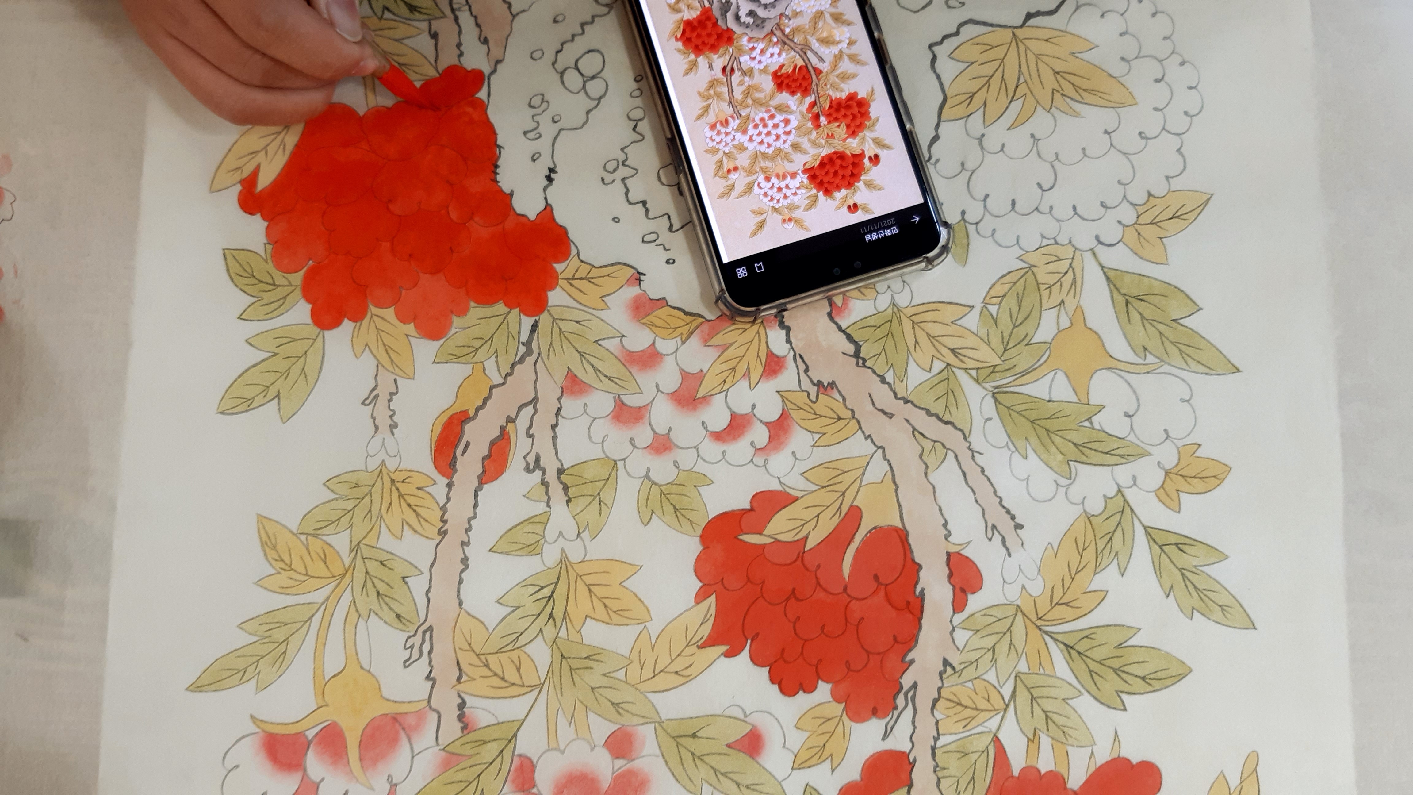 석채와 천연염료를 사용한 진채화