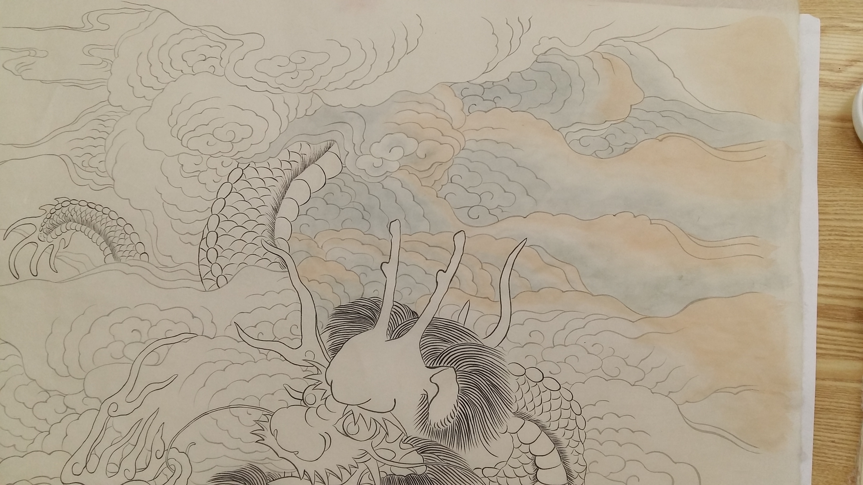 특히 이런 그림은 그림이 완성된 후까지 먹초가 색으로 덮이지 않고 그대로 살아있게 되므로 그림의 인상에 큰 영향을 줍니다. 그래서 먹초를 잘 떠야 합니다.