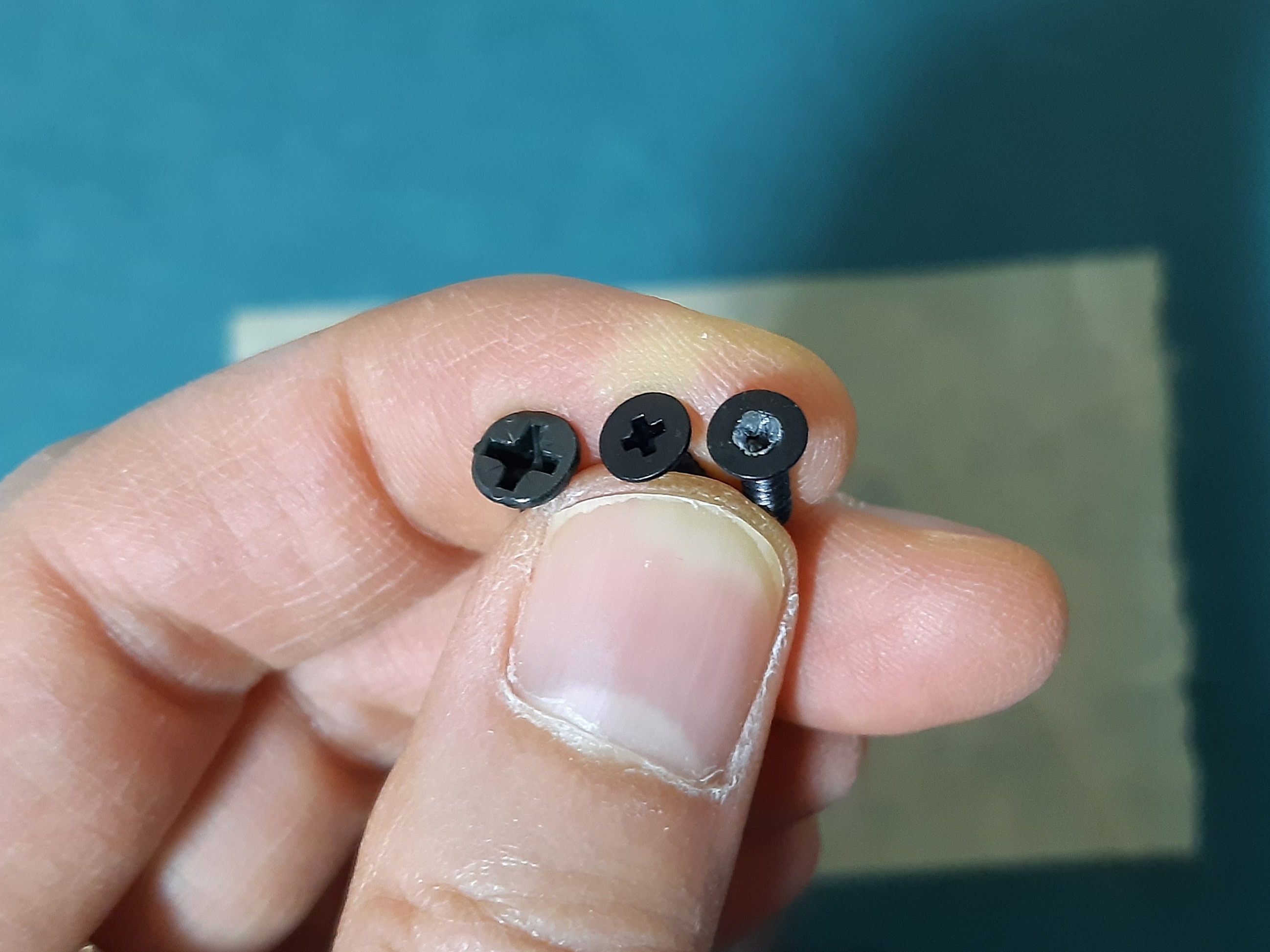 왼쪽의 작은 피스는 재질이 물러서 나사 십자 부분이 금방 마모되어 보다 조금 큰 단단한 피스를 사용하였습니다.