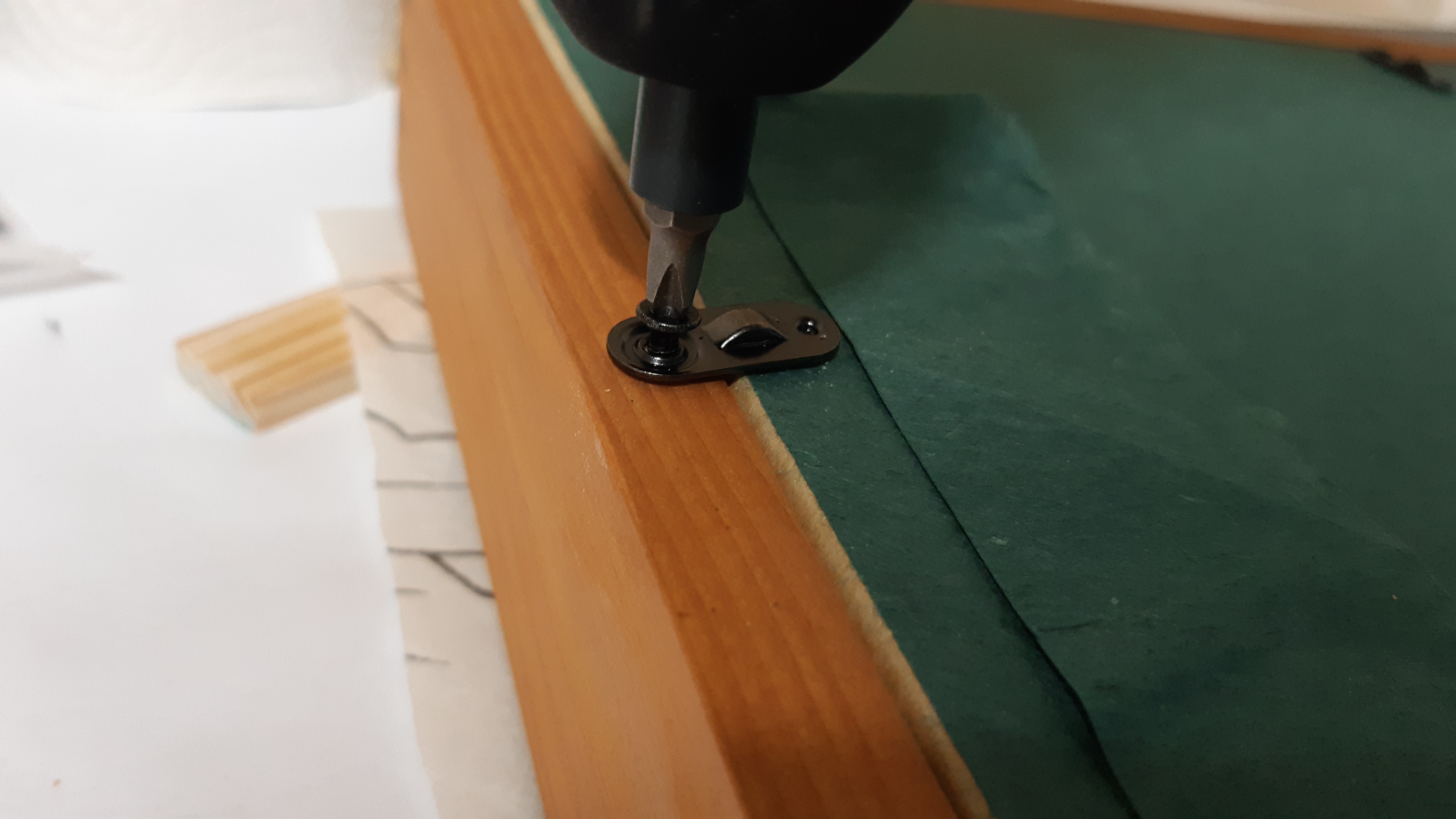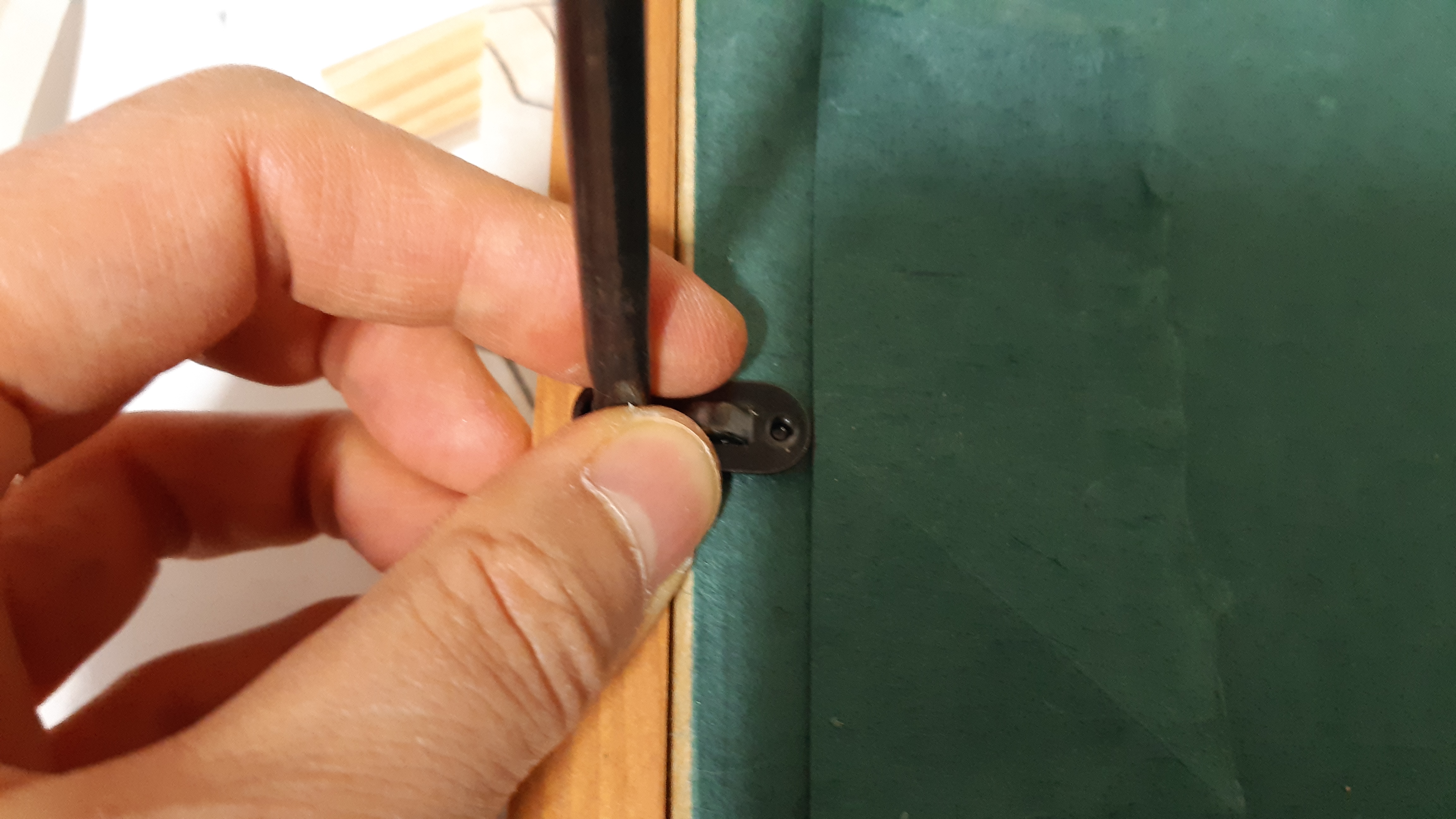 액자 뒷면에 프레임과 판넬을 고정하기 위해 돔보를 박겠습니다.