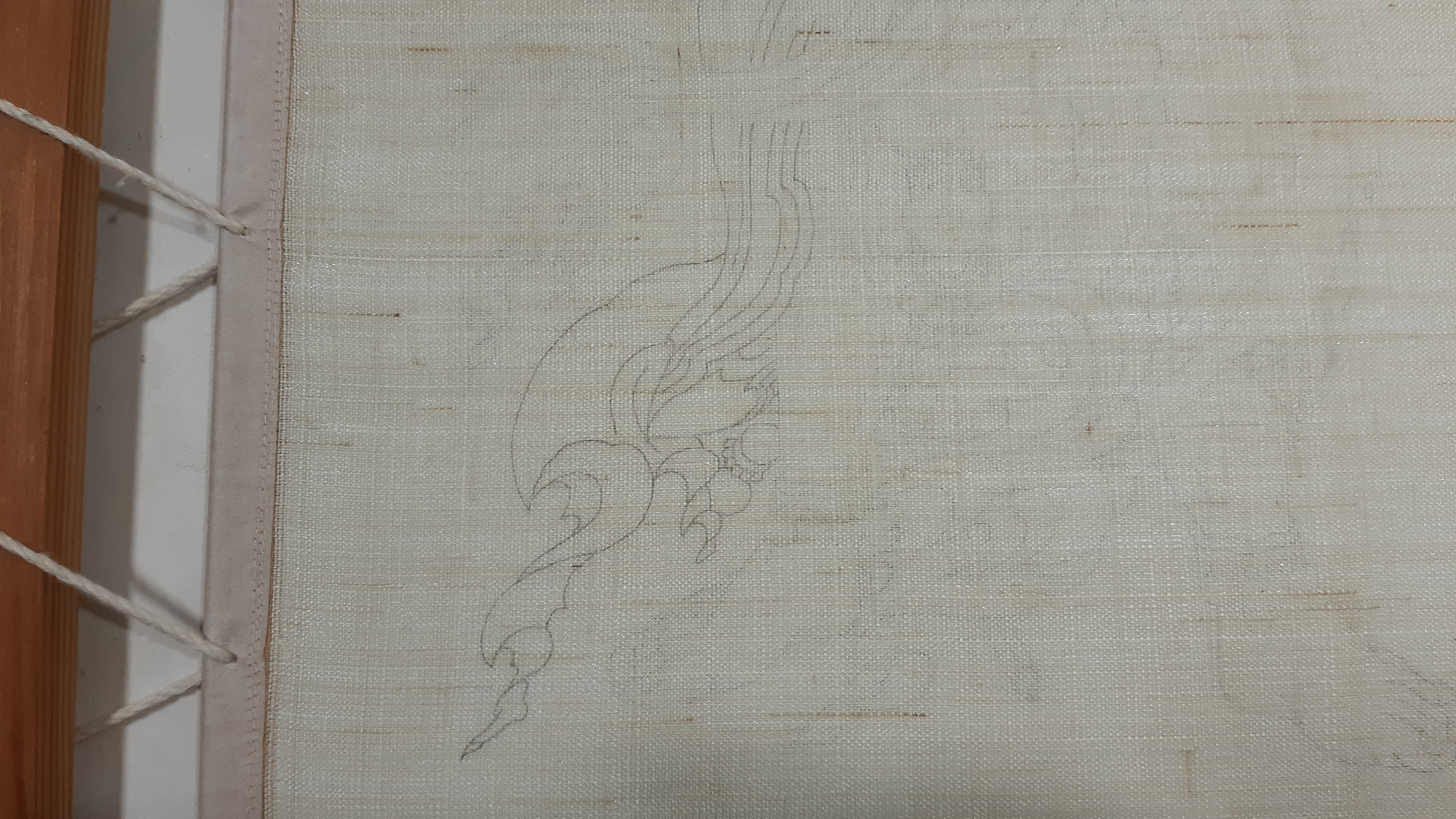 색을 테스트 할 삼베가 여유가 없어 비단으로 테스트 바탕재를 만듭니다.