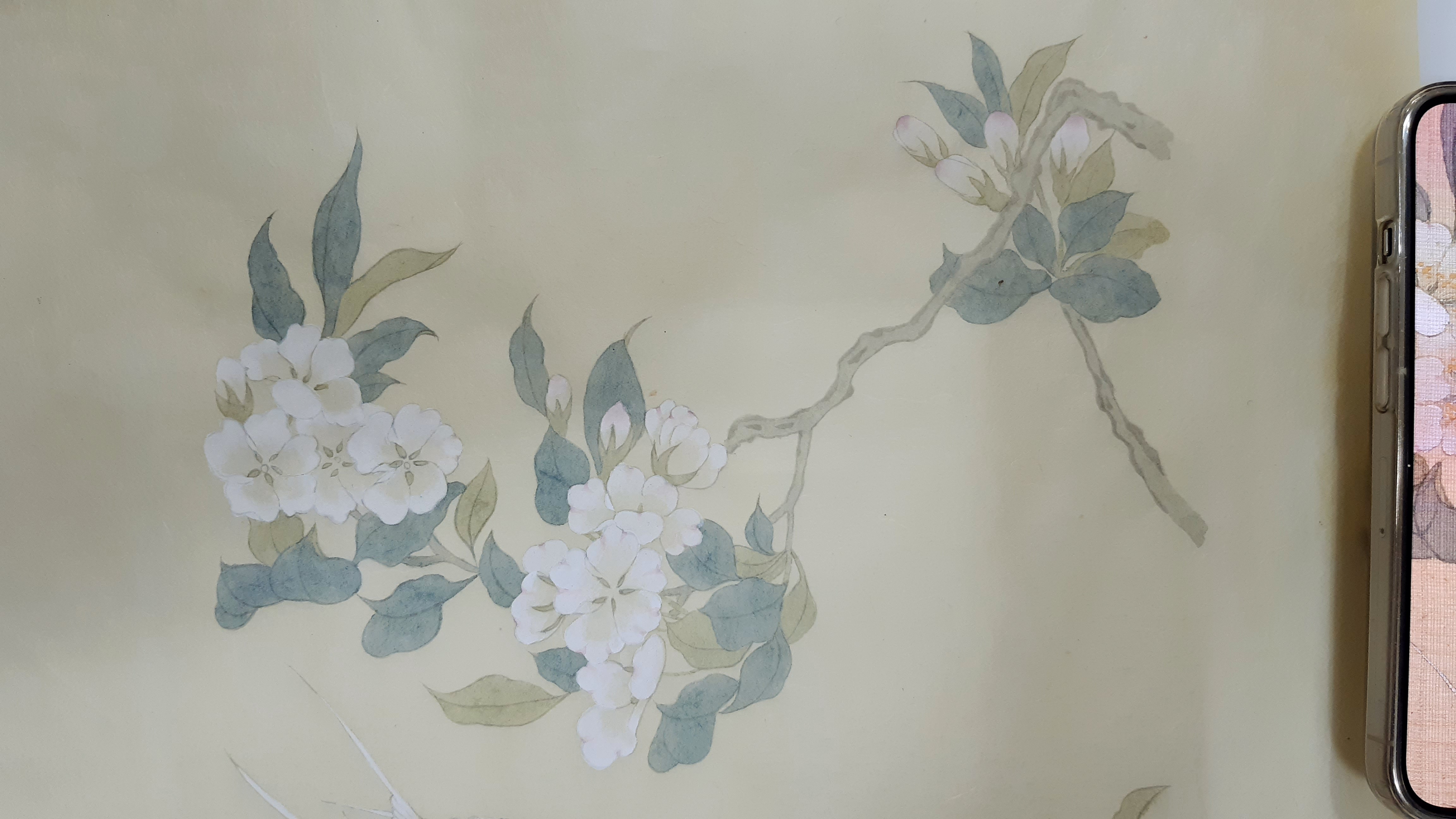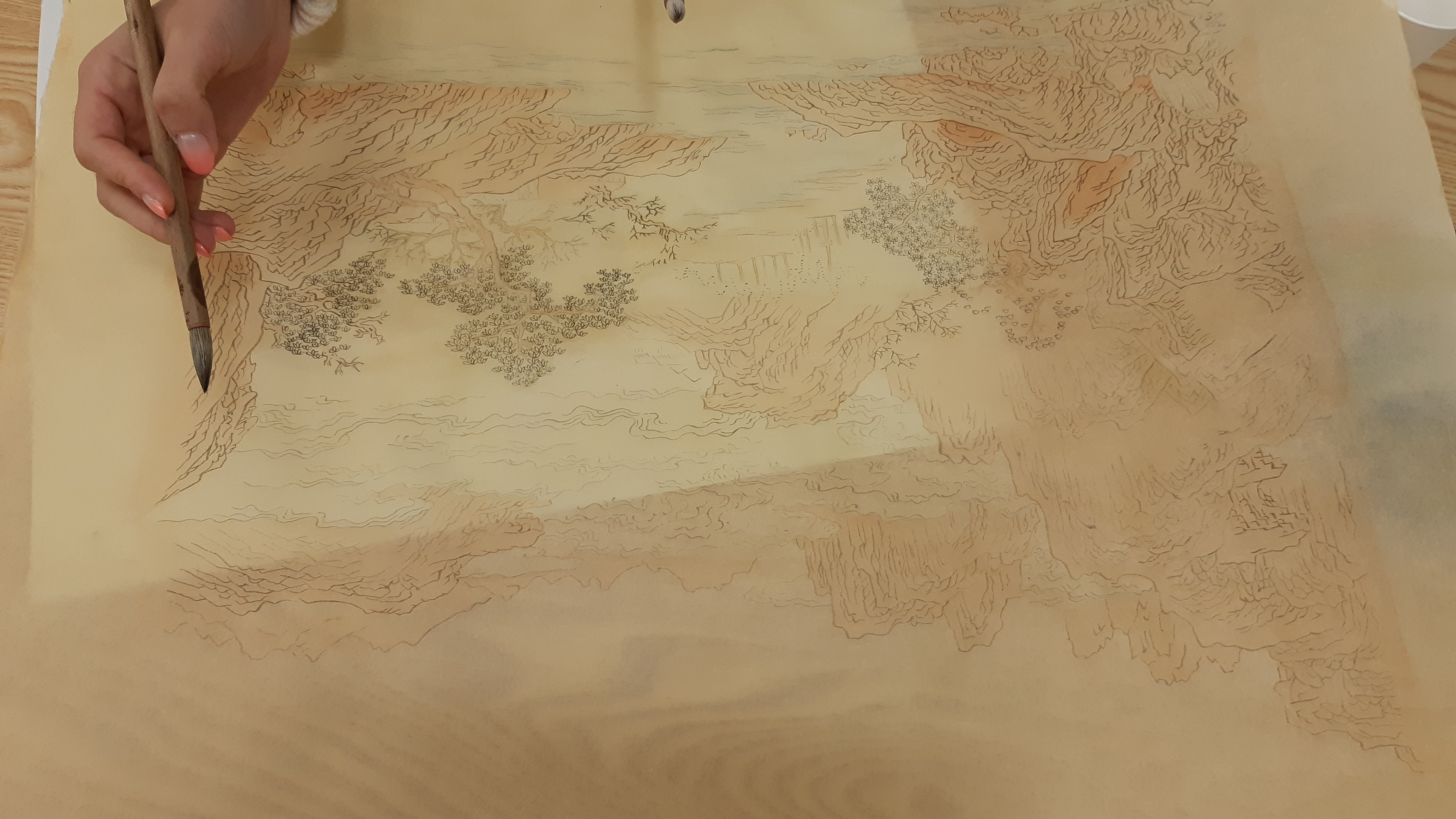 송대연화도 (출수부용도) 원화는 비단에 천연염료와 석채로 그린 것이지만, 수업할 때는 배우는 분이 가지고 계신 재료로 그립니다.