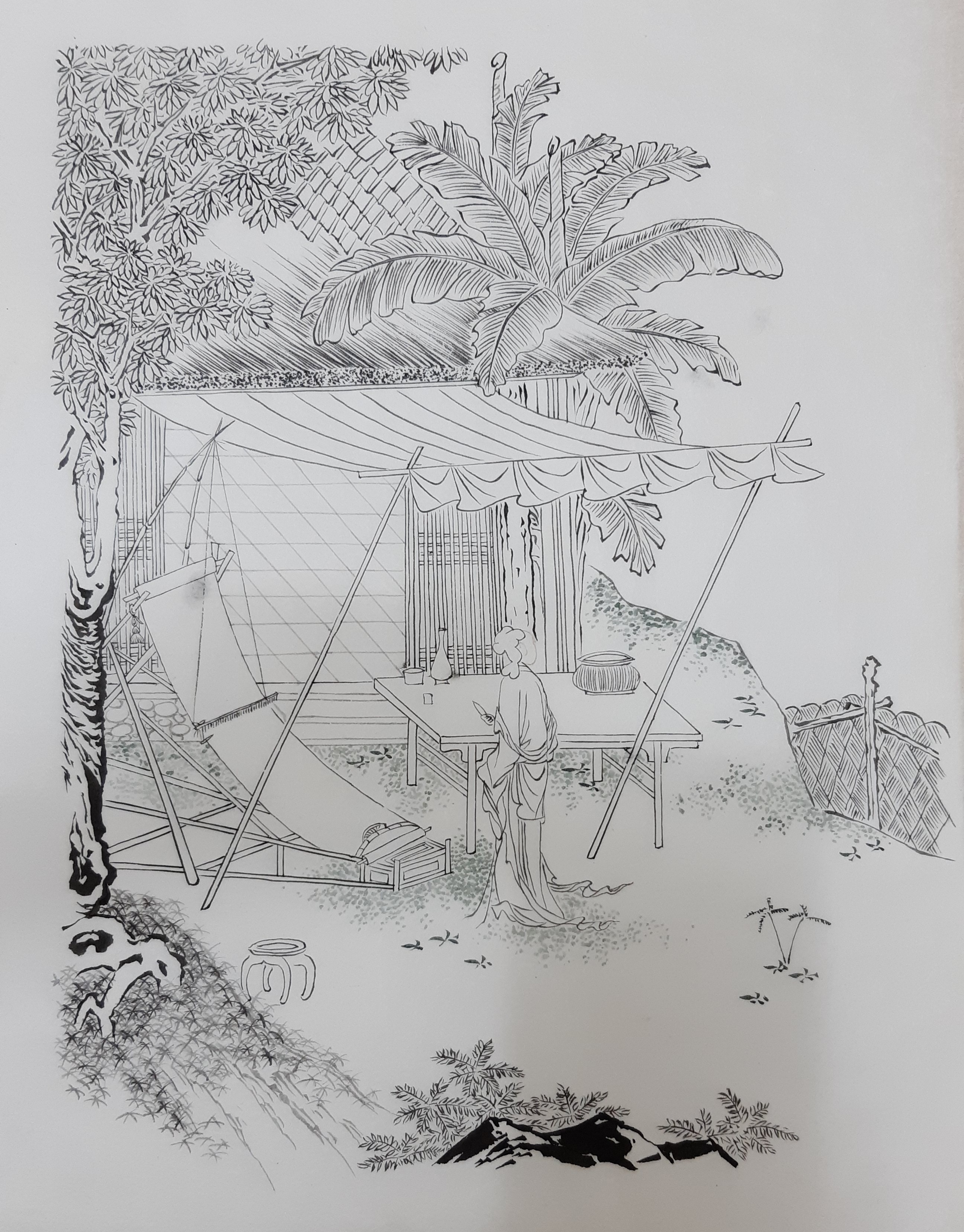 마당의 풀은 봉채 쪽과 등황, 미남, 대자, 먹을 섞어 색을 만들어 표현합니다.