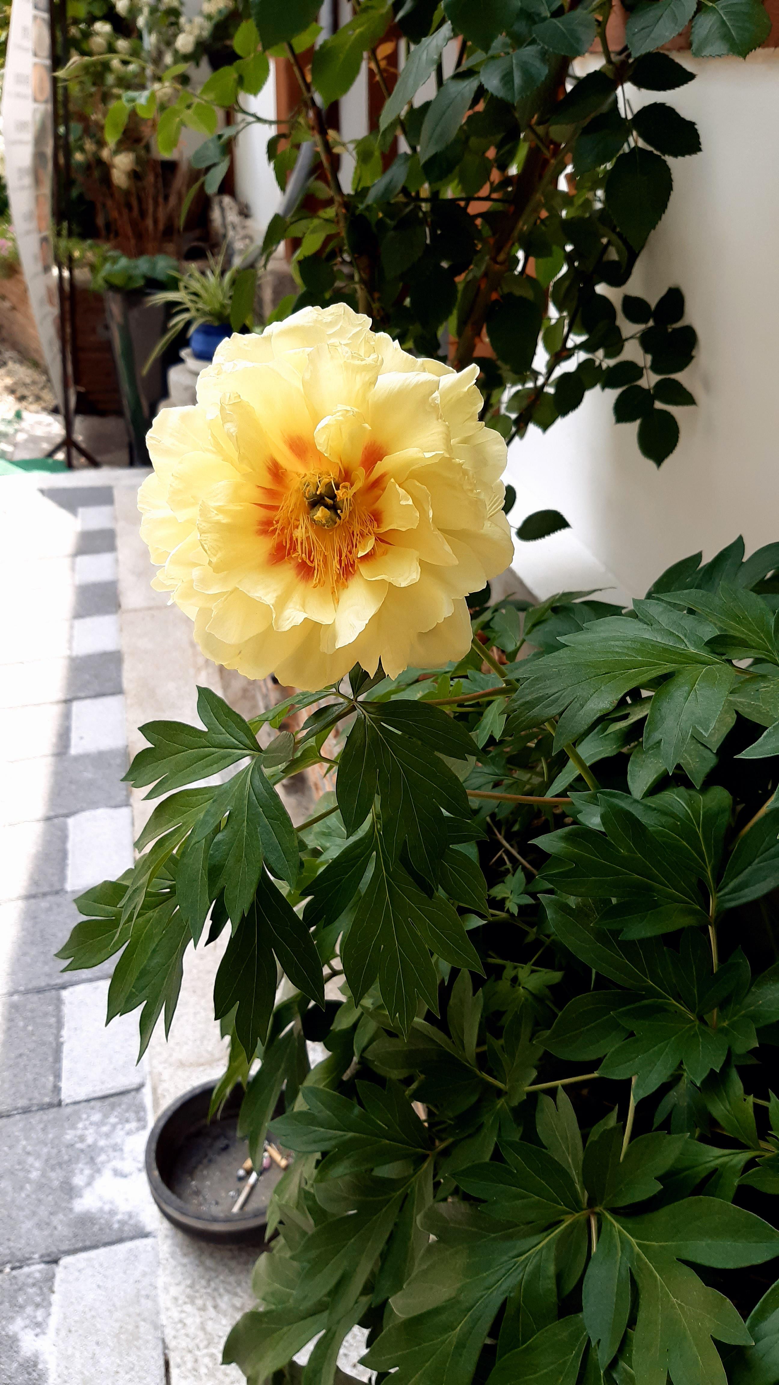 노란 모란은 키가 작고 꽃도 흰모란보다 작으며