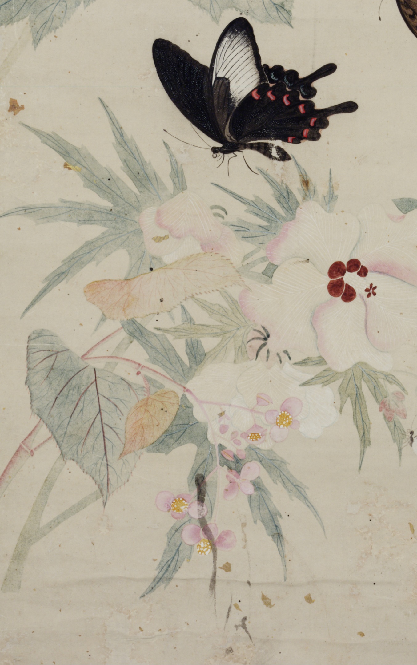 조선시대 남계우의 화접도 '꽃과 나비' 아랫부분에 분홍 베고니아 꽃