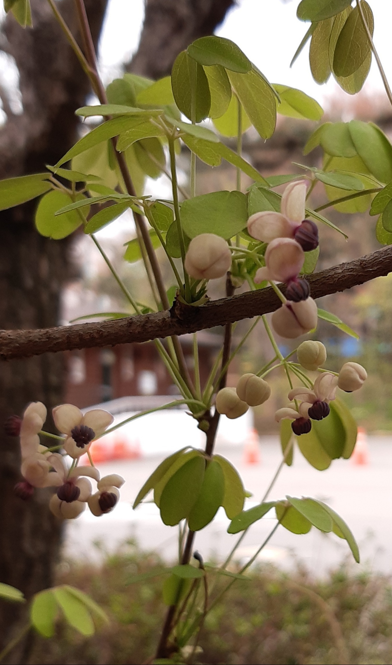 입구로 가는 길에 처음 본 으름덩굴나무 꽃
