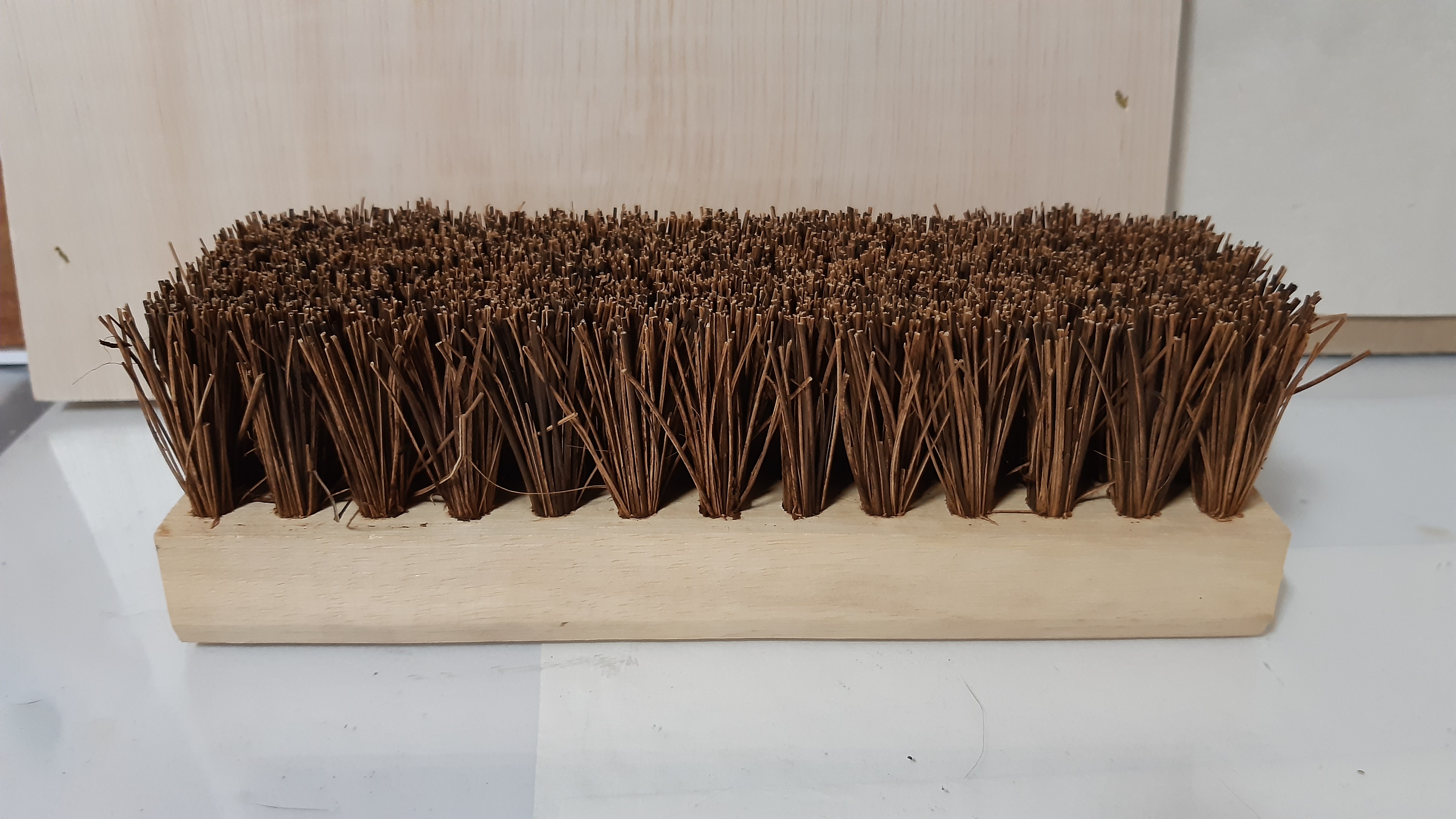 장황(표구)에 사용하는 다짐솔(탕탕솔) 과 문지름솔(마무리솔) 의 솔 부분을 만드는 종려나무 입니다. 처음보았습니다.