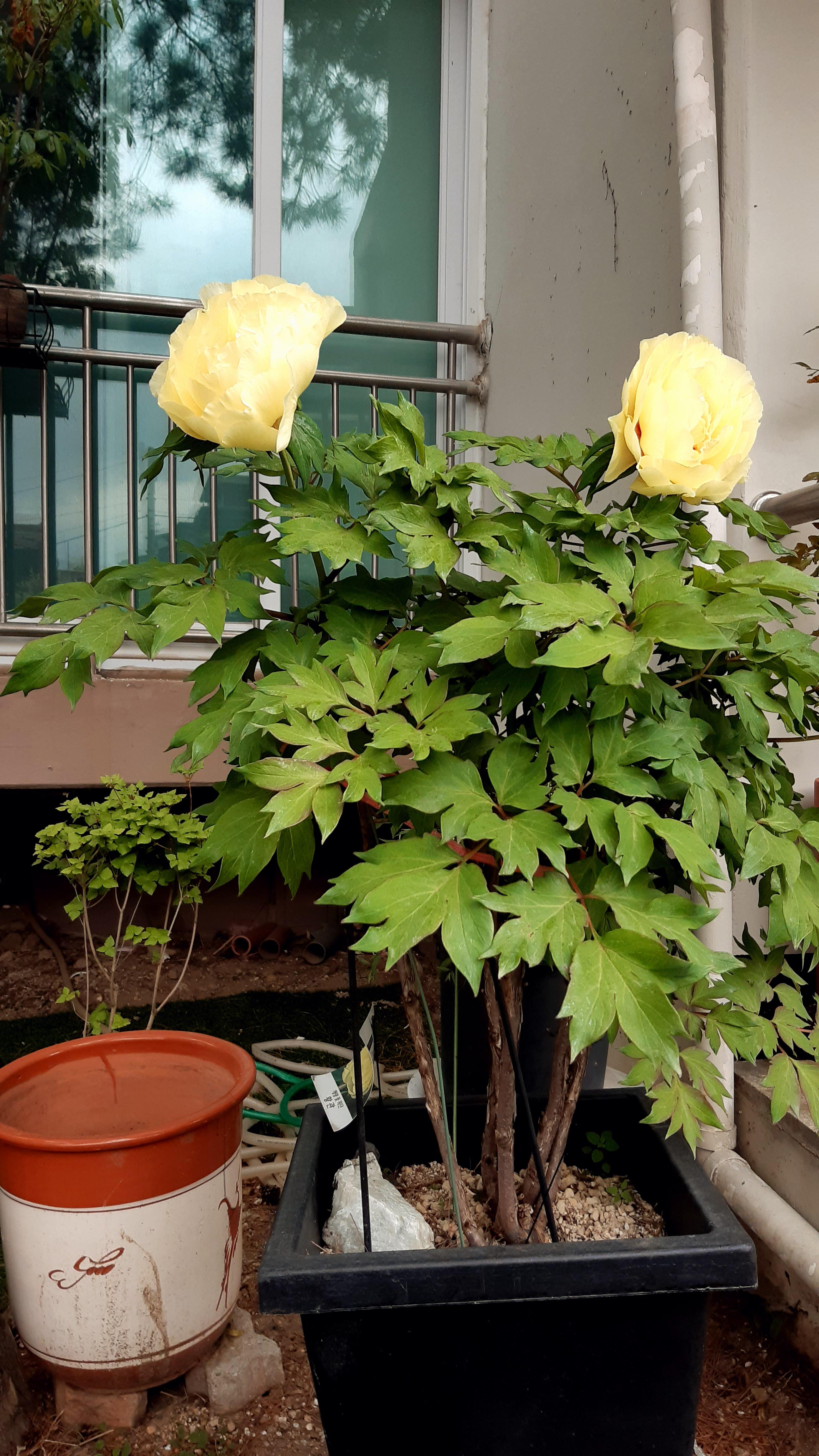 보통 모란은 4월 말에 길어야 일주일 정도 피어있는데 노란 모란이 오늘 23.5.12 피어 있는것을 보았습니다.