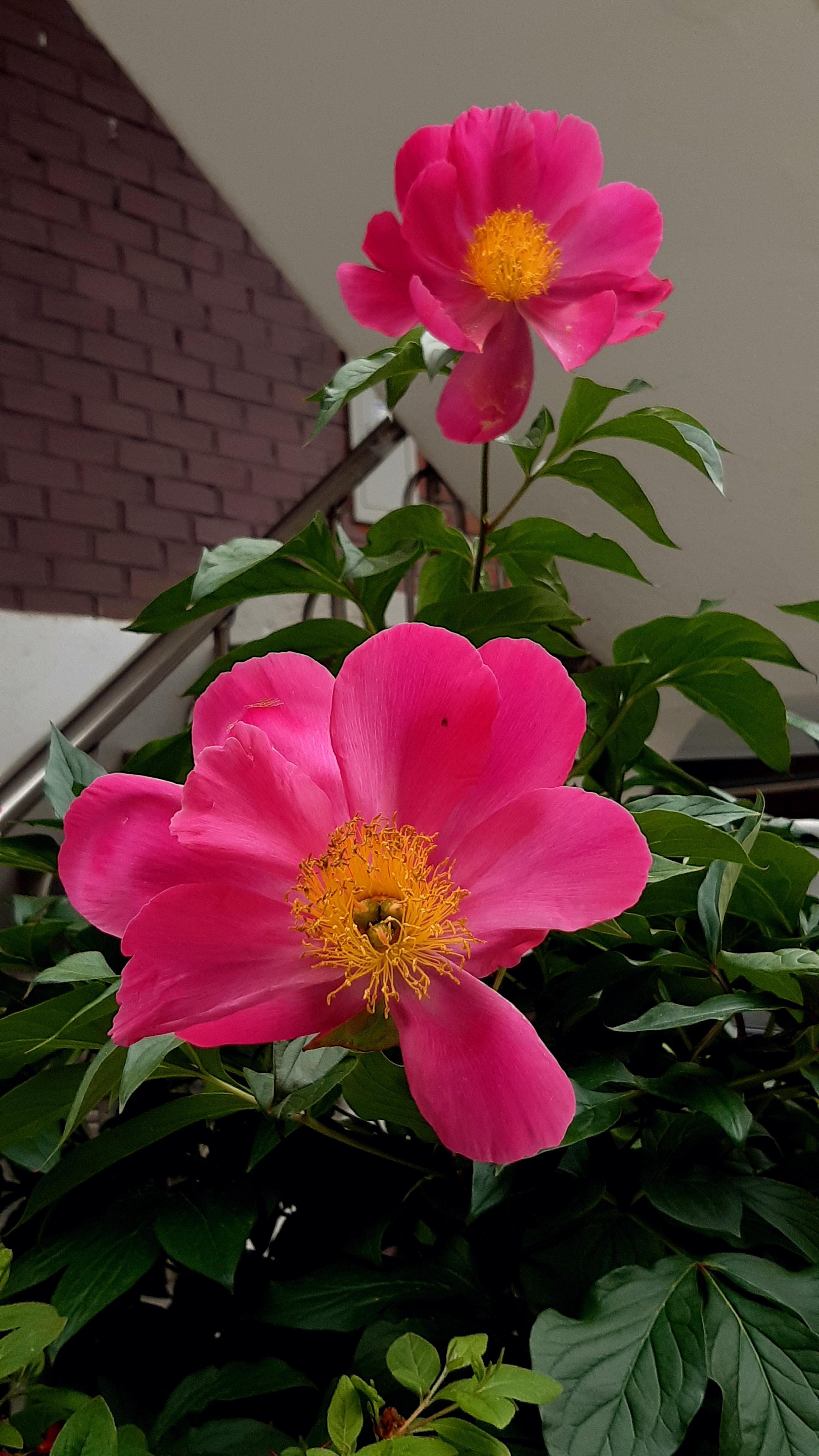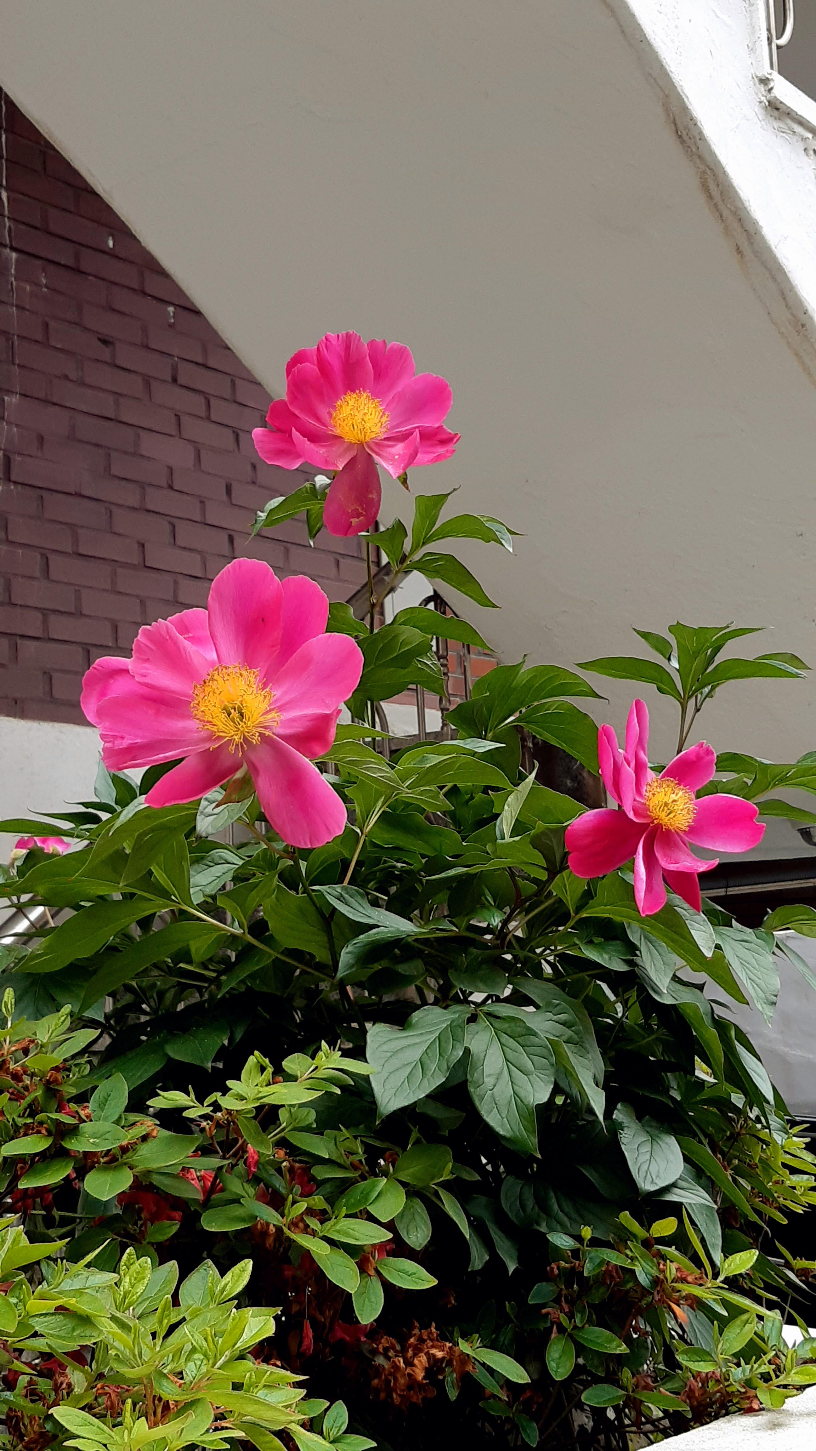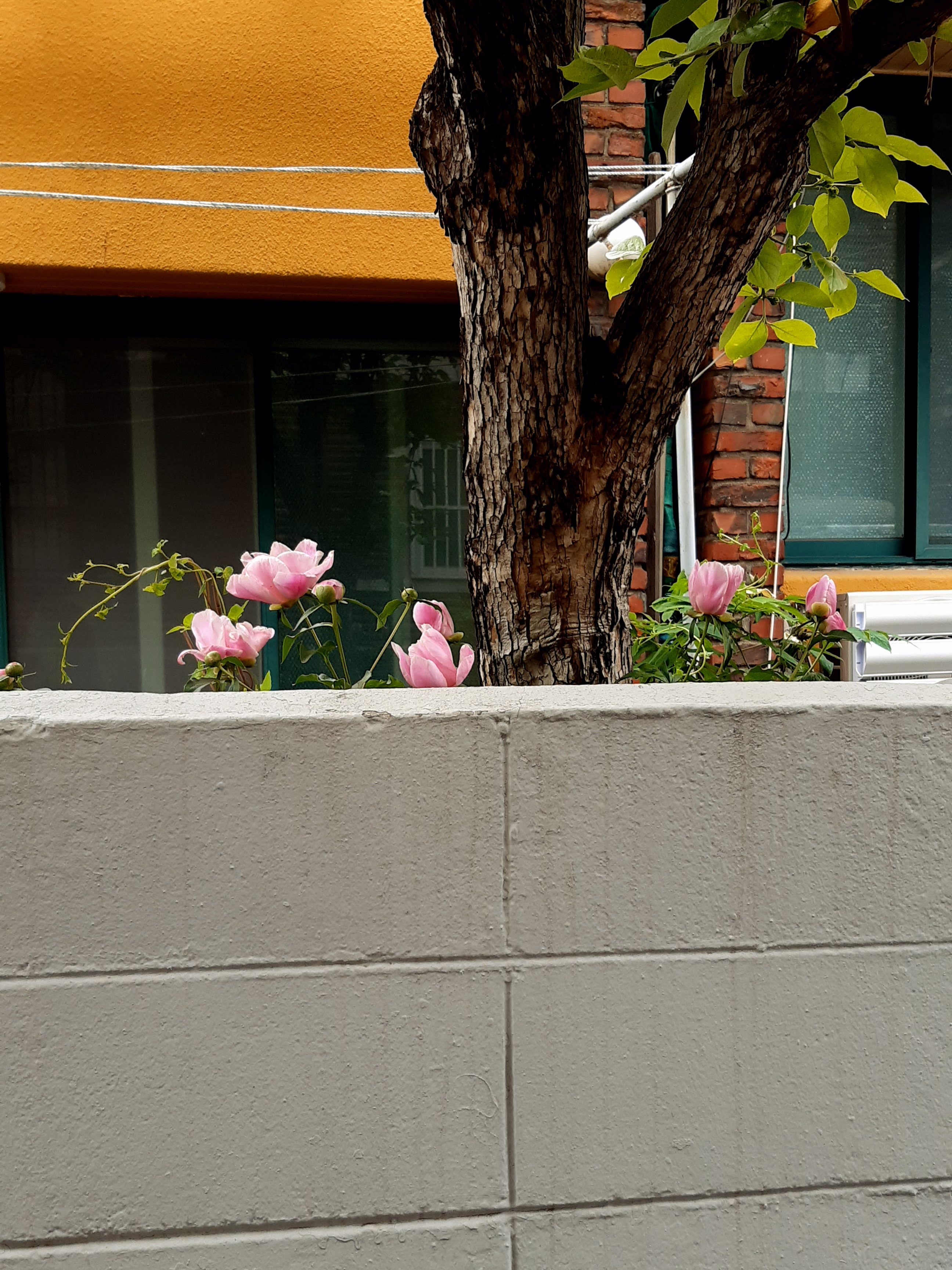 담장안의 분홍 작약