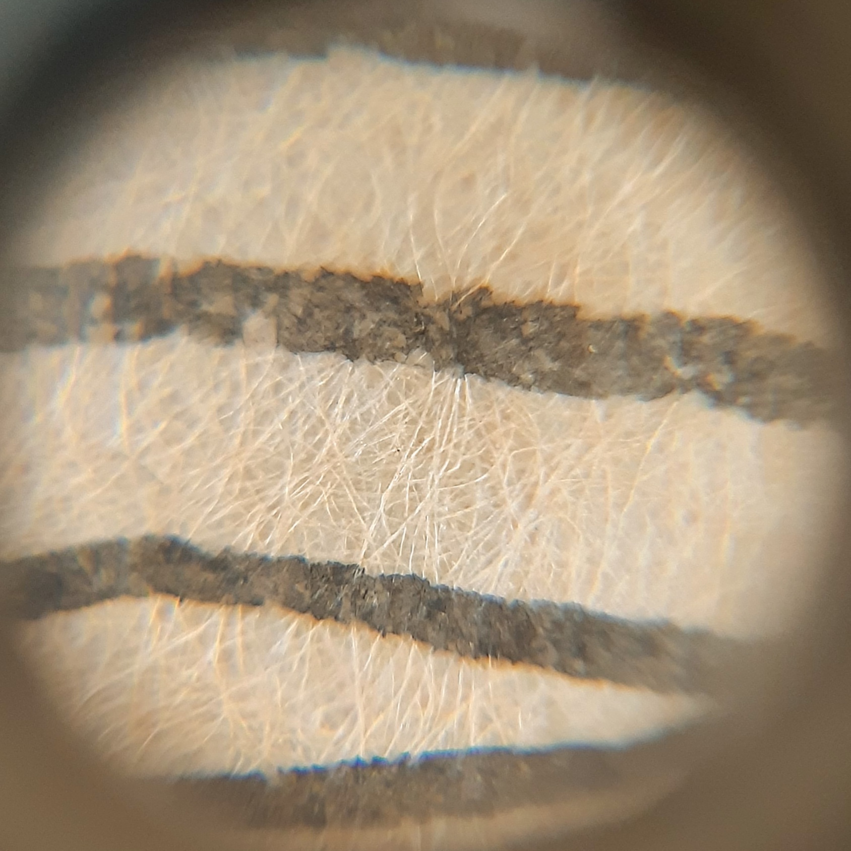 아래 사진은 분채를 1회 칠했는데 너무 진하게 칠해서 순지의 섬유가 다 파묻혔습니다.