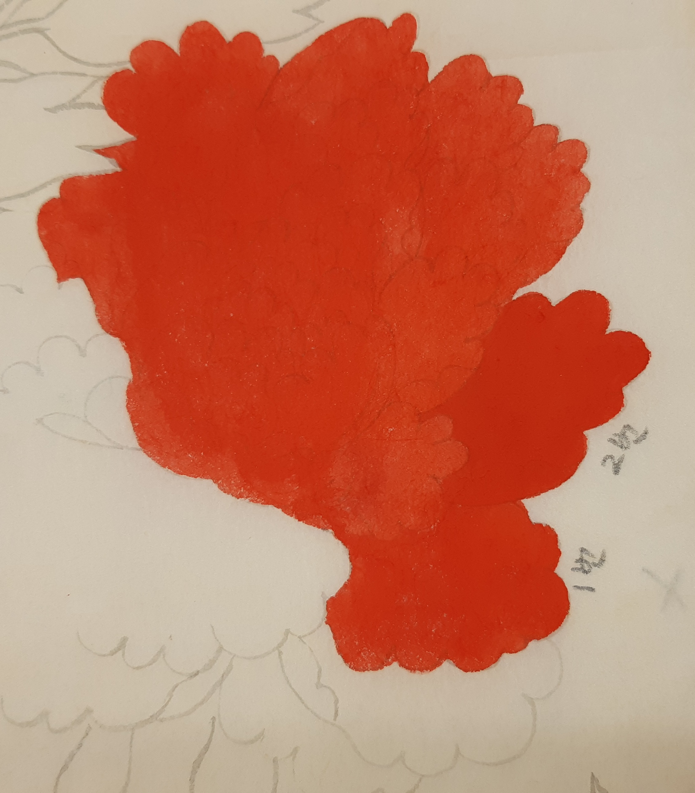 분채 2회 채색은 1회 칠 한 물감에 물을 한방울 더 타서 칠합니다.