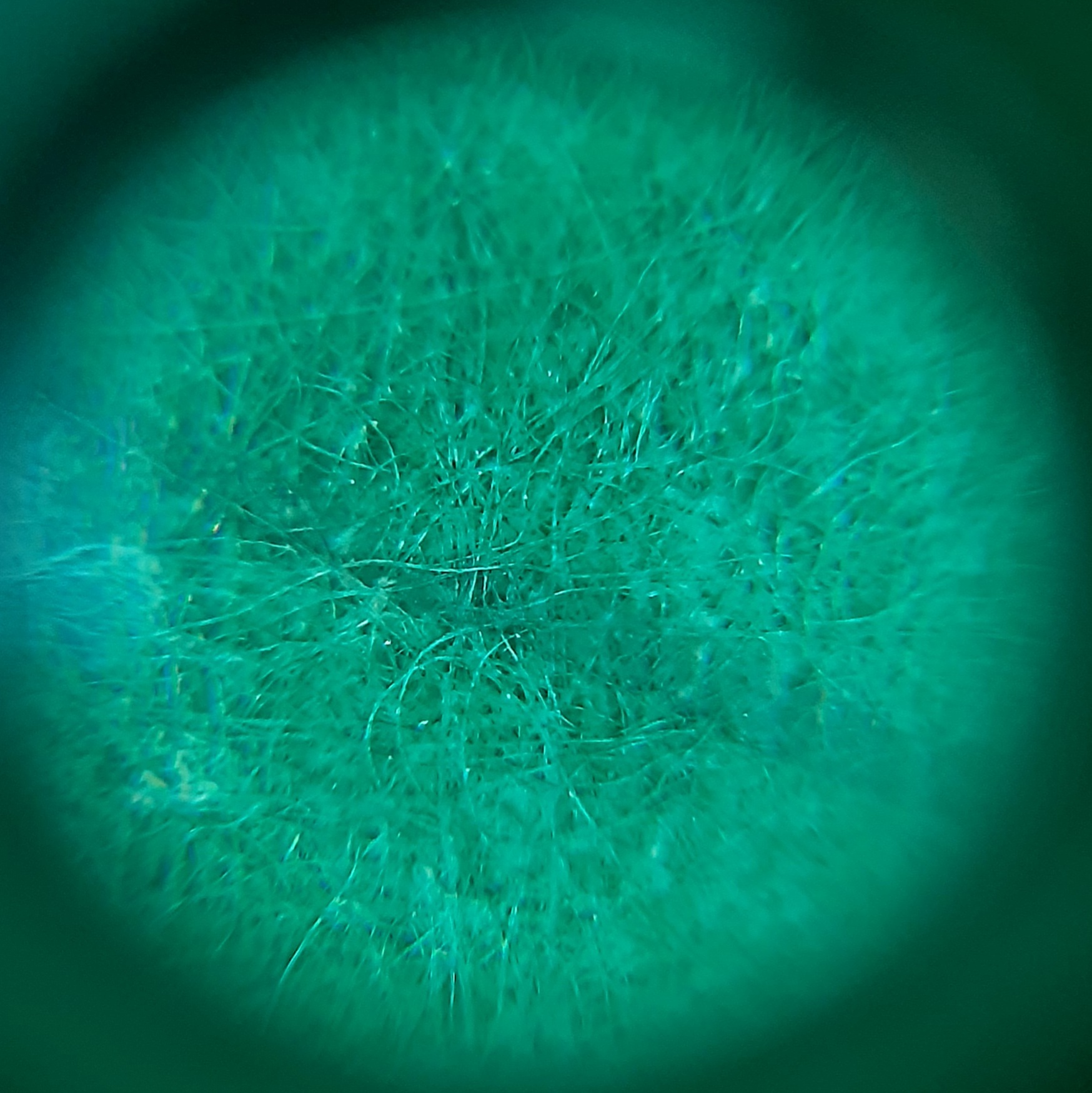아교에 의해 섬유에 엉겨 붙어 있습니다.