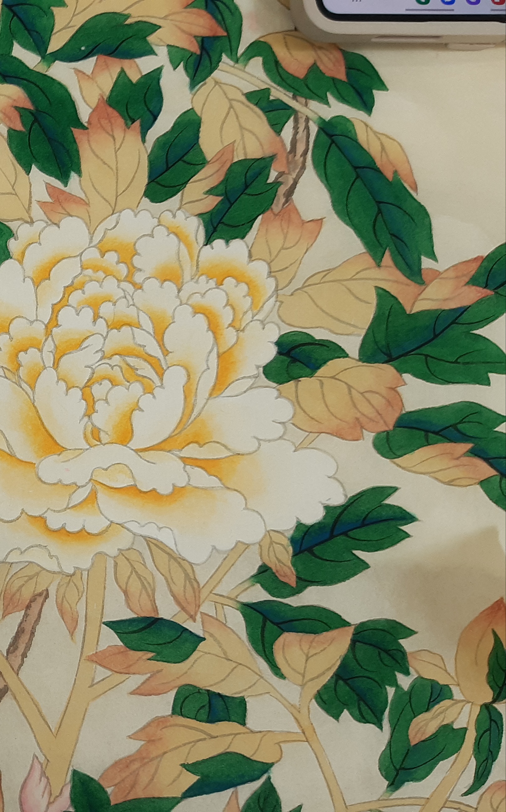석채를 바림하는 것은 분채나 봉채 바림과는 느낌이 많이 다릅니다.