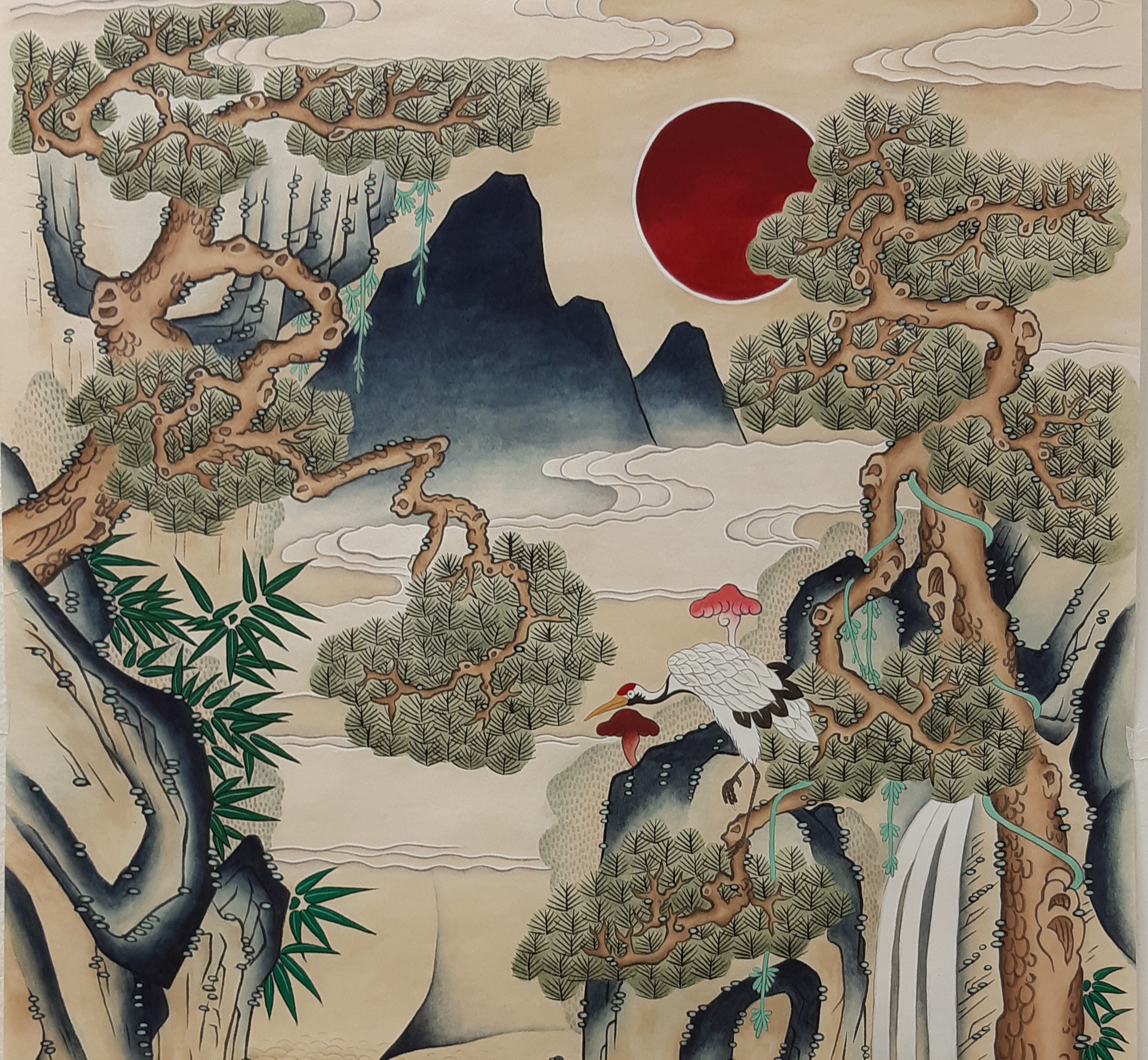 회원분이 자신의 색감을 반영하여 채색한 십장생도 입니다.