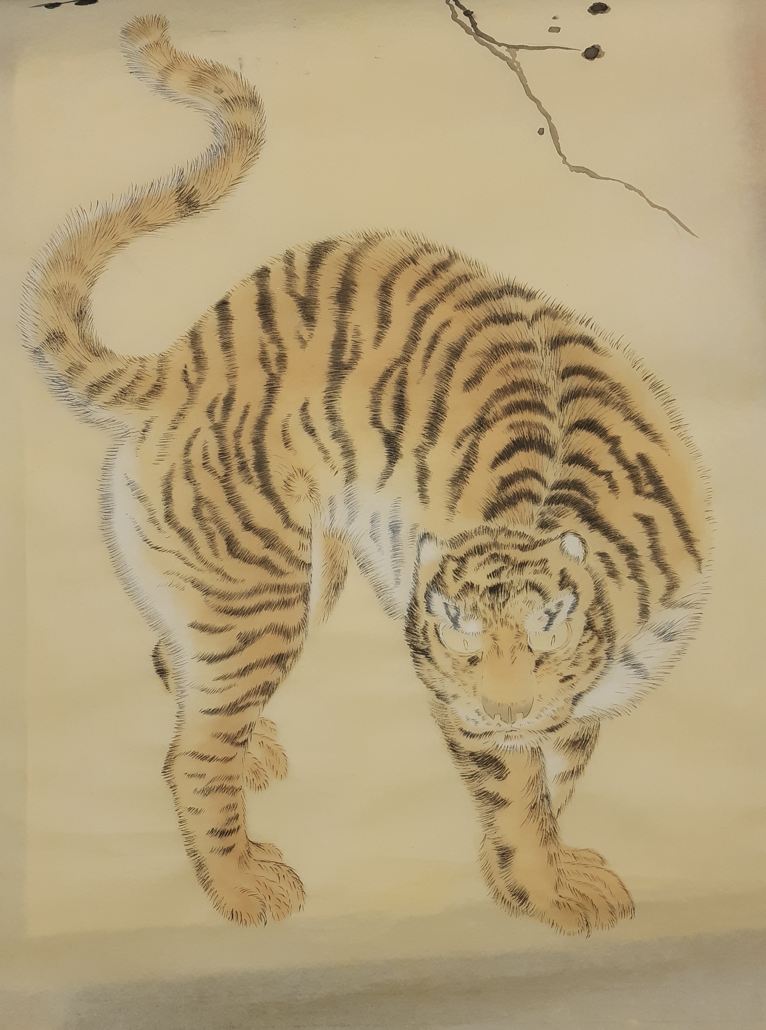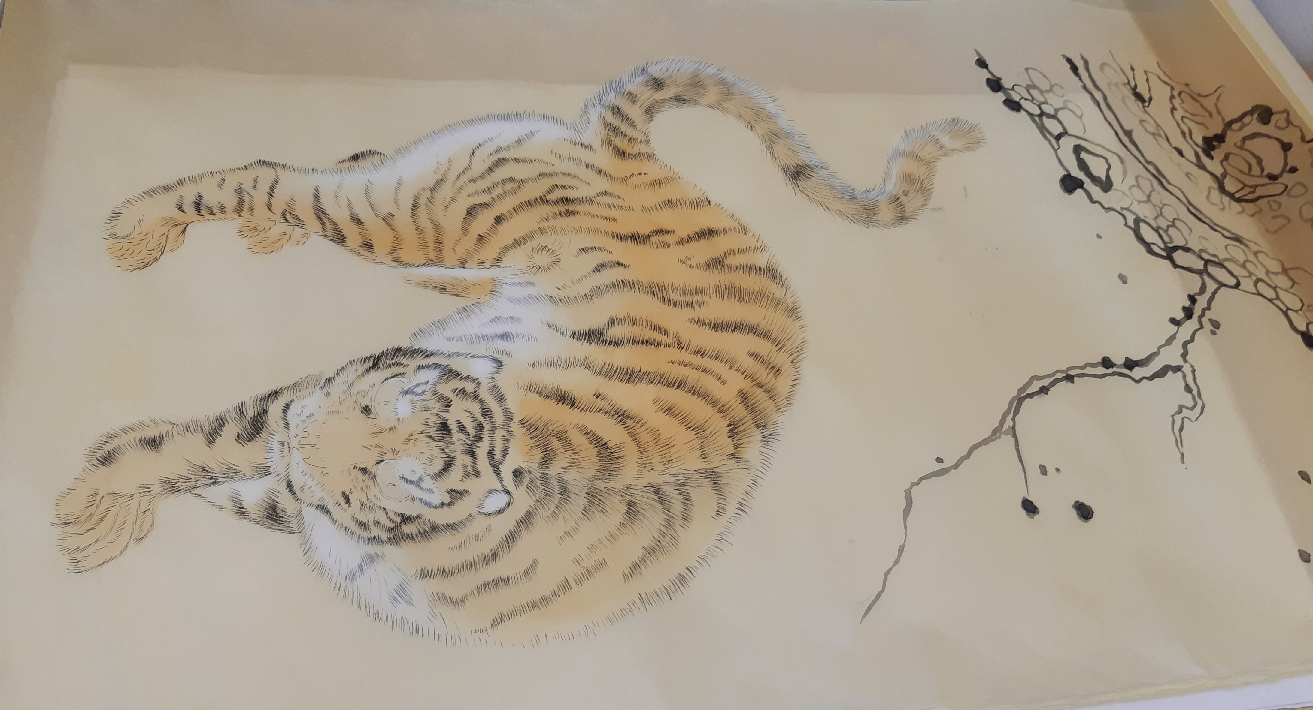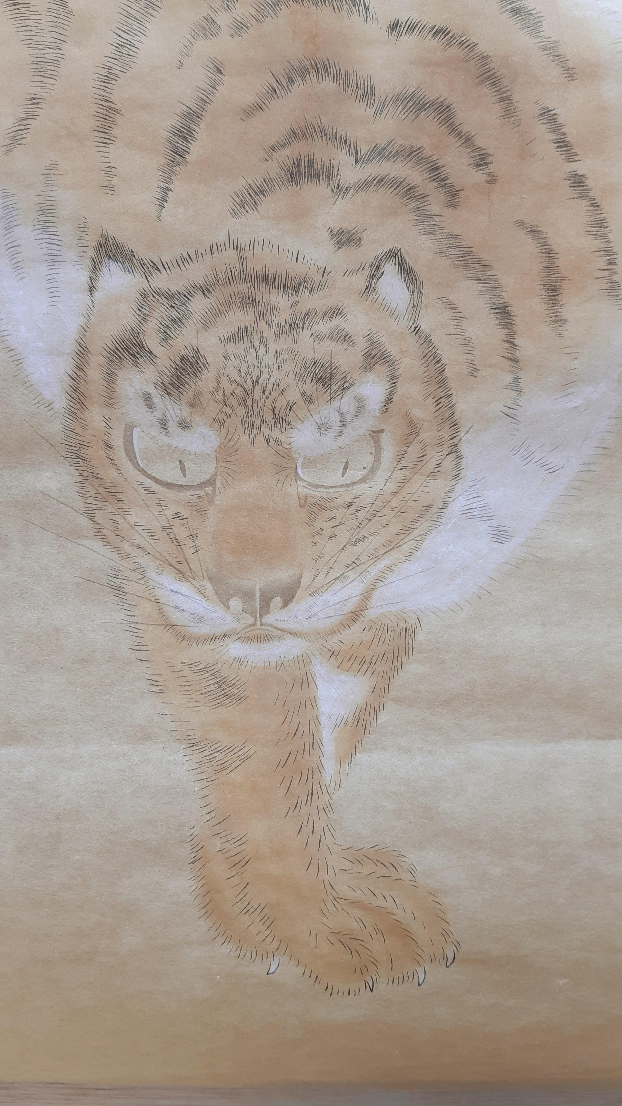 호랑이 초를 뜰 때 검은 무늬는 진하게, 외곽 털은 흐리게 치면 빠른데, 털을 치다보면 전부 진하게 되는 경우가 많아, 일단 흐린 먹으로 전체 초를 떴습니다.