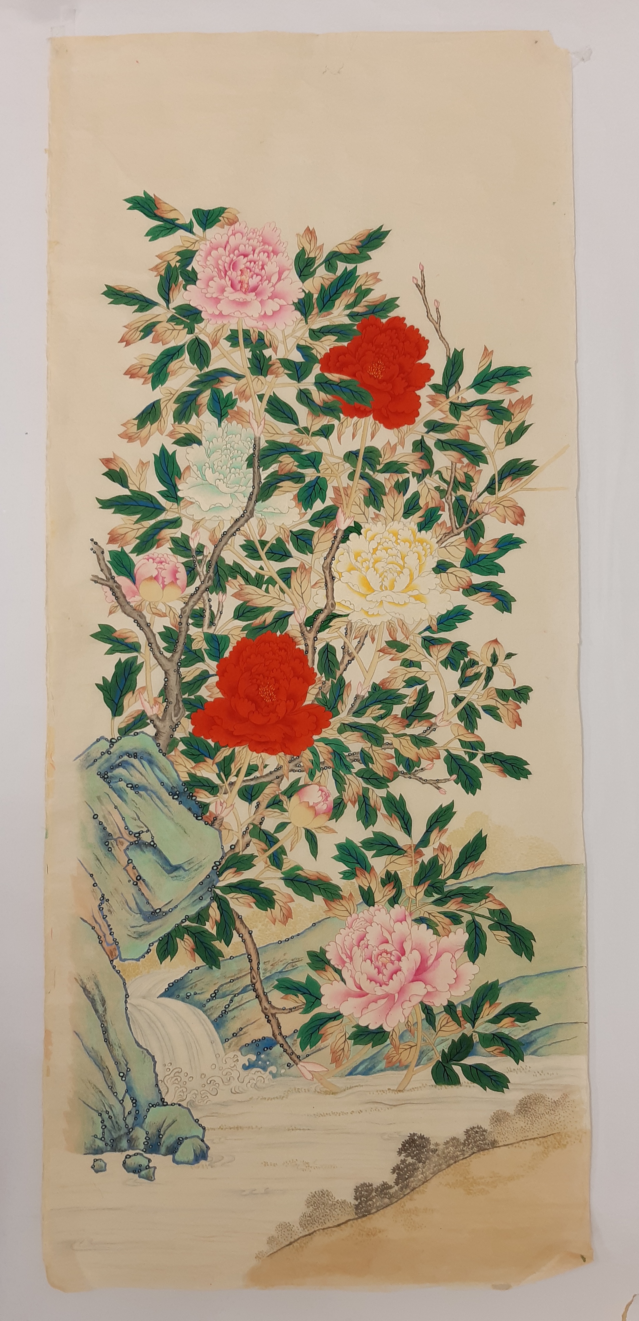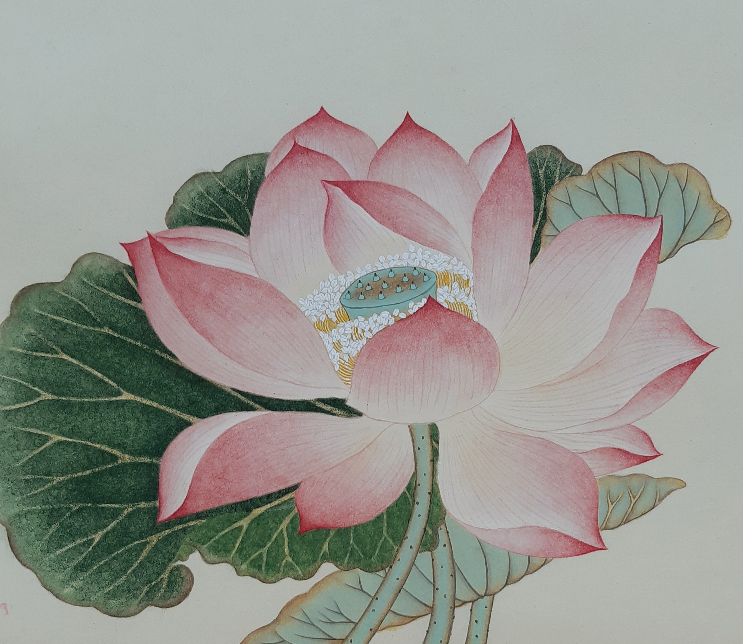 송대화조화 중 하나로 봉채와 석채, 염료 사용법을 익힙니다. 꽃밥줄기 등 색이 원화와 다르게 칠한 부분이 있는데 전체적인 색의 발란스와 균형을 맞추기 위해 바꾸어 채색하였습니다.
