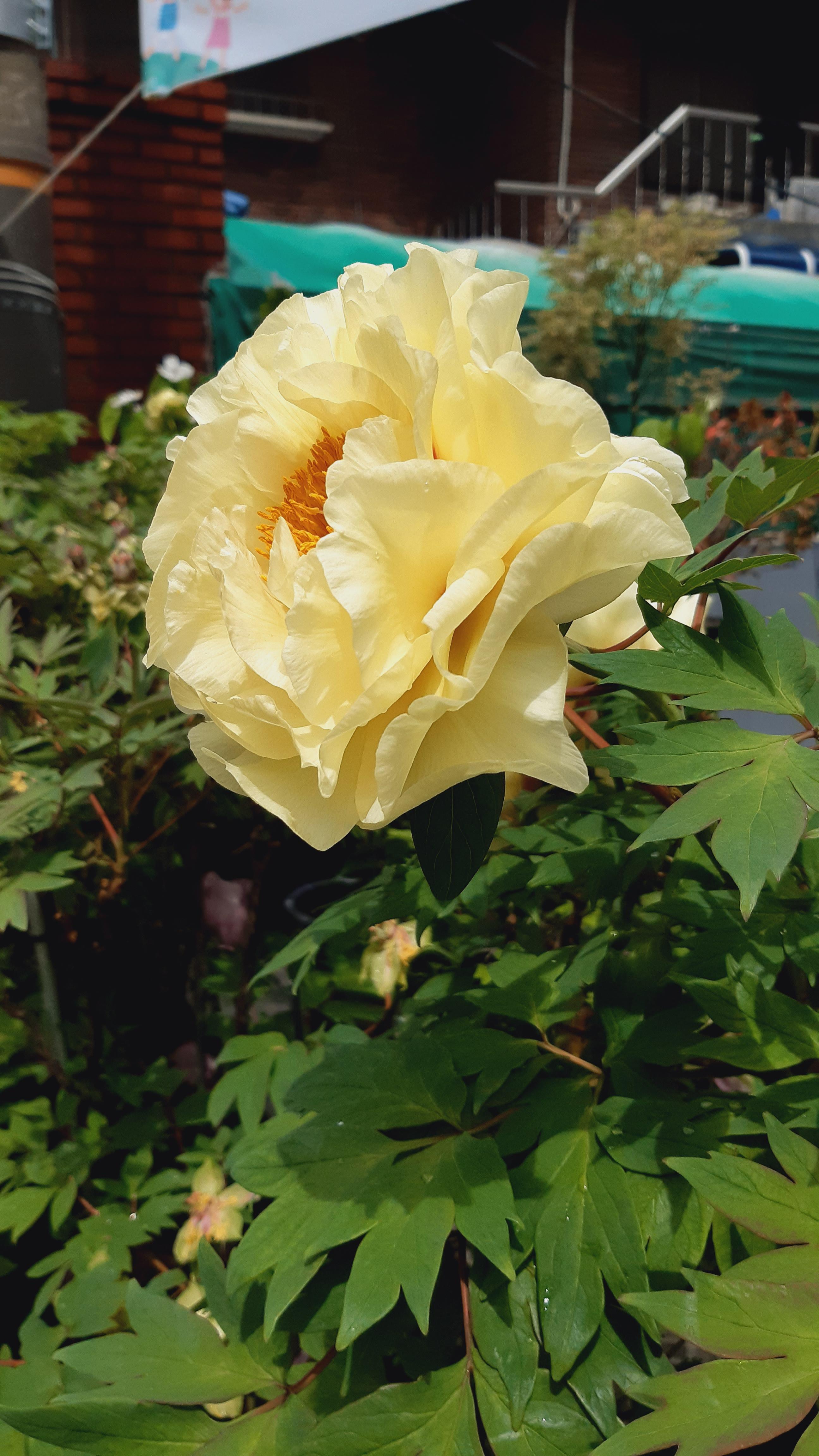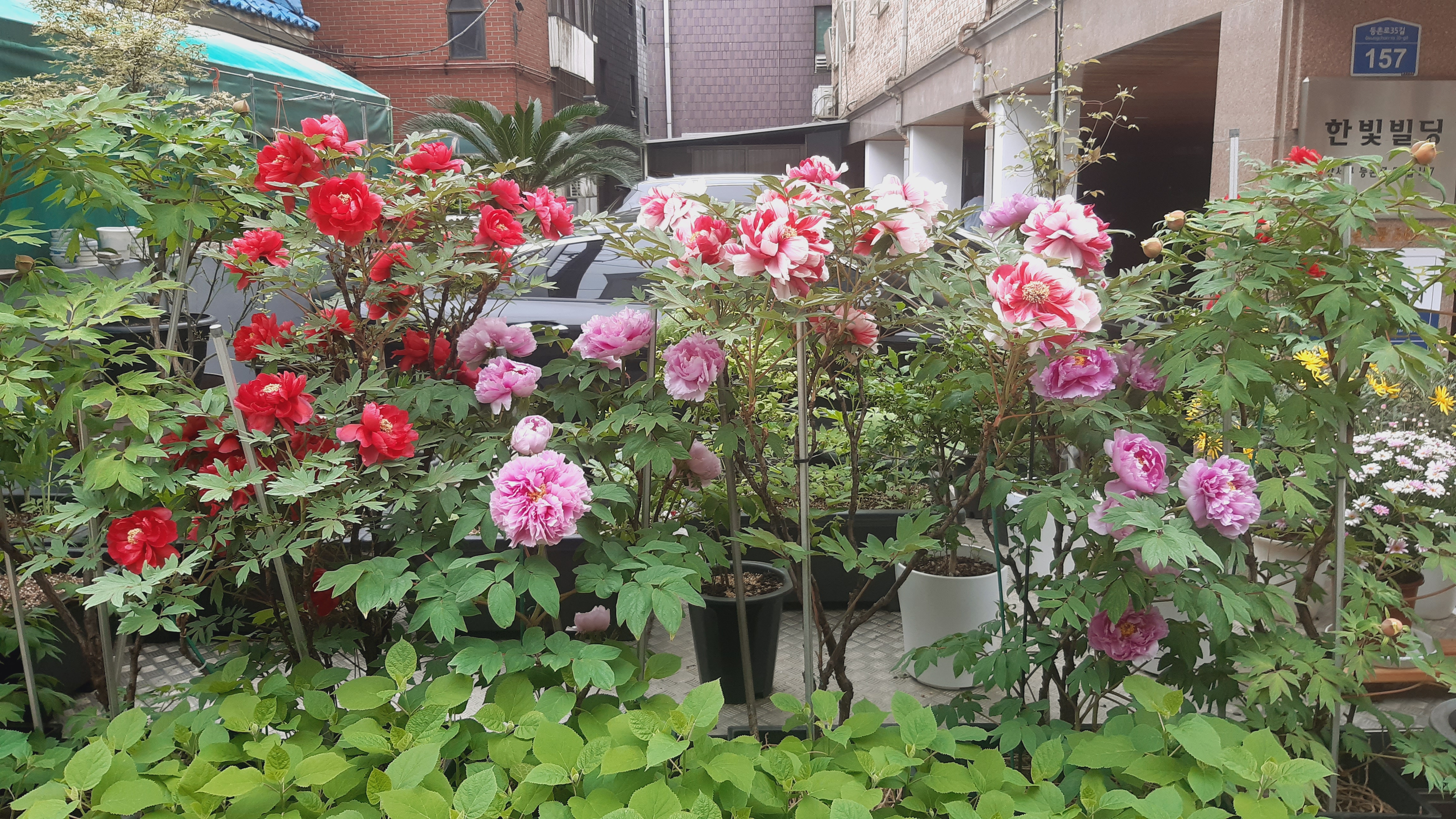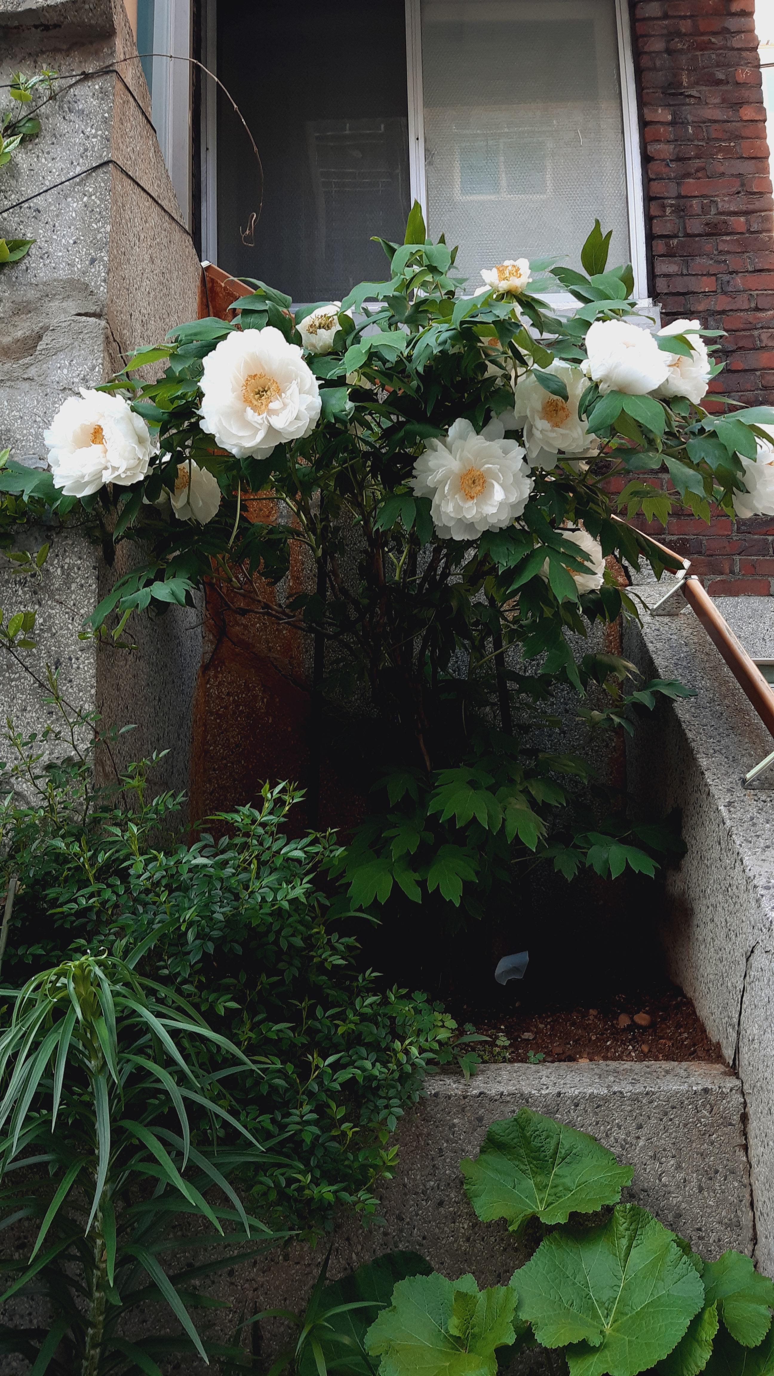 인사동 음식점 담벼락에서 본 노란모란은 키가 50cm 정도 되보였는데요. 품종의 차이라기 보다는 생육 환경의 차이 같습니다. 화분이 크면 크게 자라는 듯 합니다.