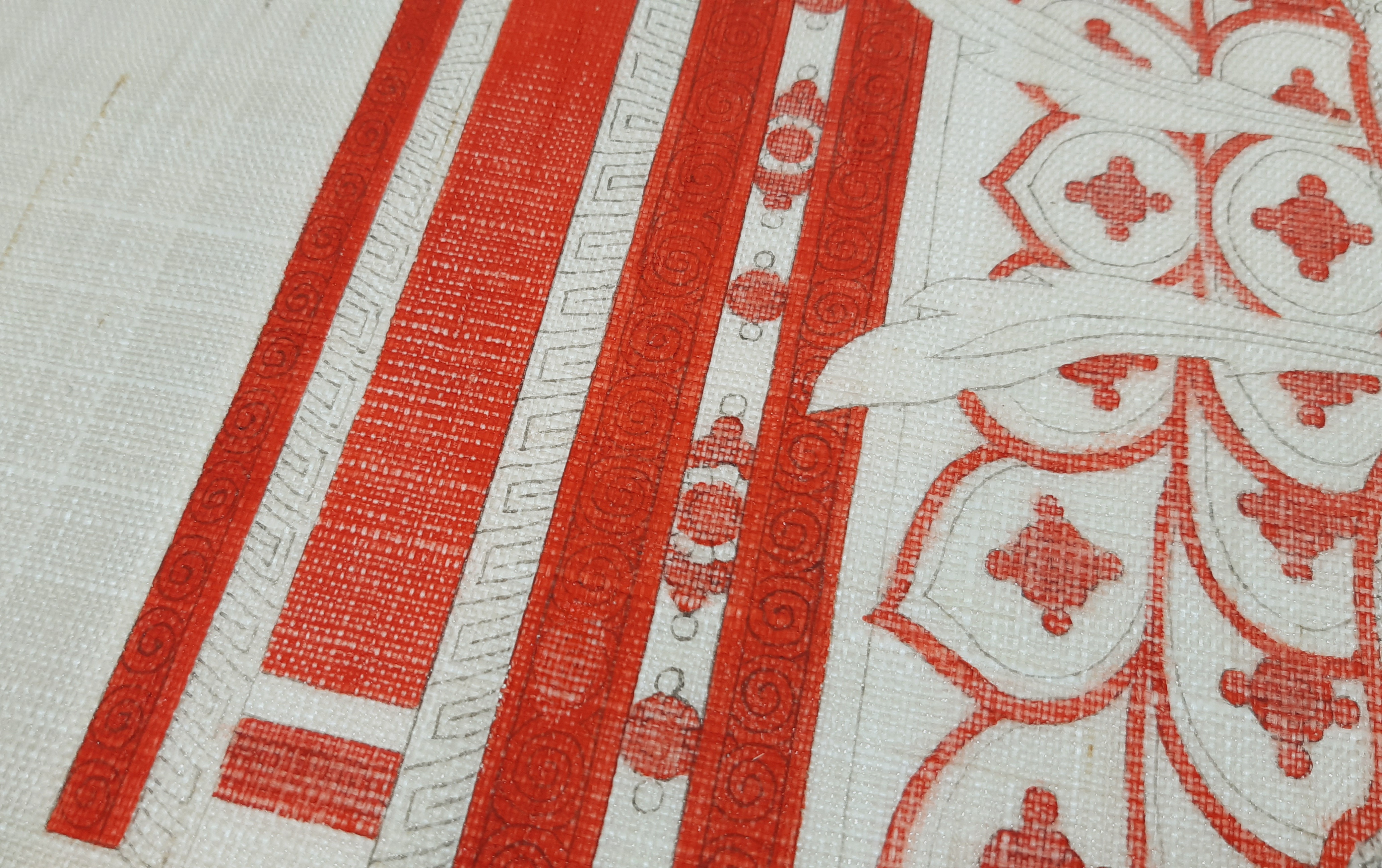 같은 색인데 먹선이 많은 곳과 없는 곳이 색이 달라 보인다. 채색은 2회 채색 후, 금선을 그을 것이다. 각 단계마다 색이 달라지며 금선을 그으면 색이 약간 밝아진다. 그것을 예측하고 칠해야 한다.