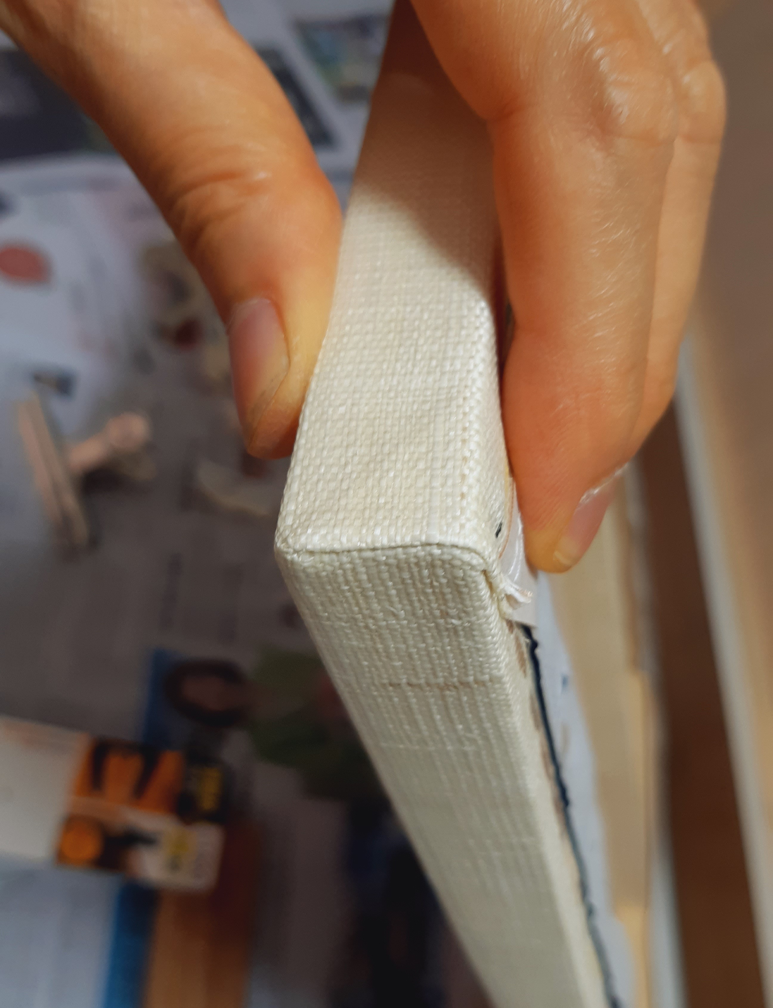 보통은 그림을 판넬 크기보다 사방 2mm 정도 크게 자른 후, 색지나 금지로 그림 둘레를 감아말음 한 다음, 판넬 위에 고정합니다.