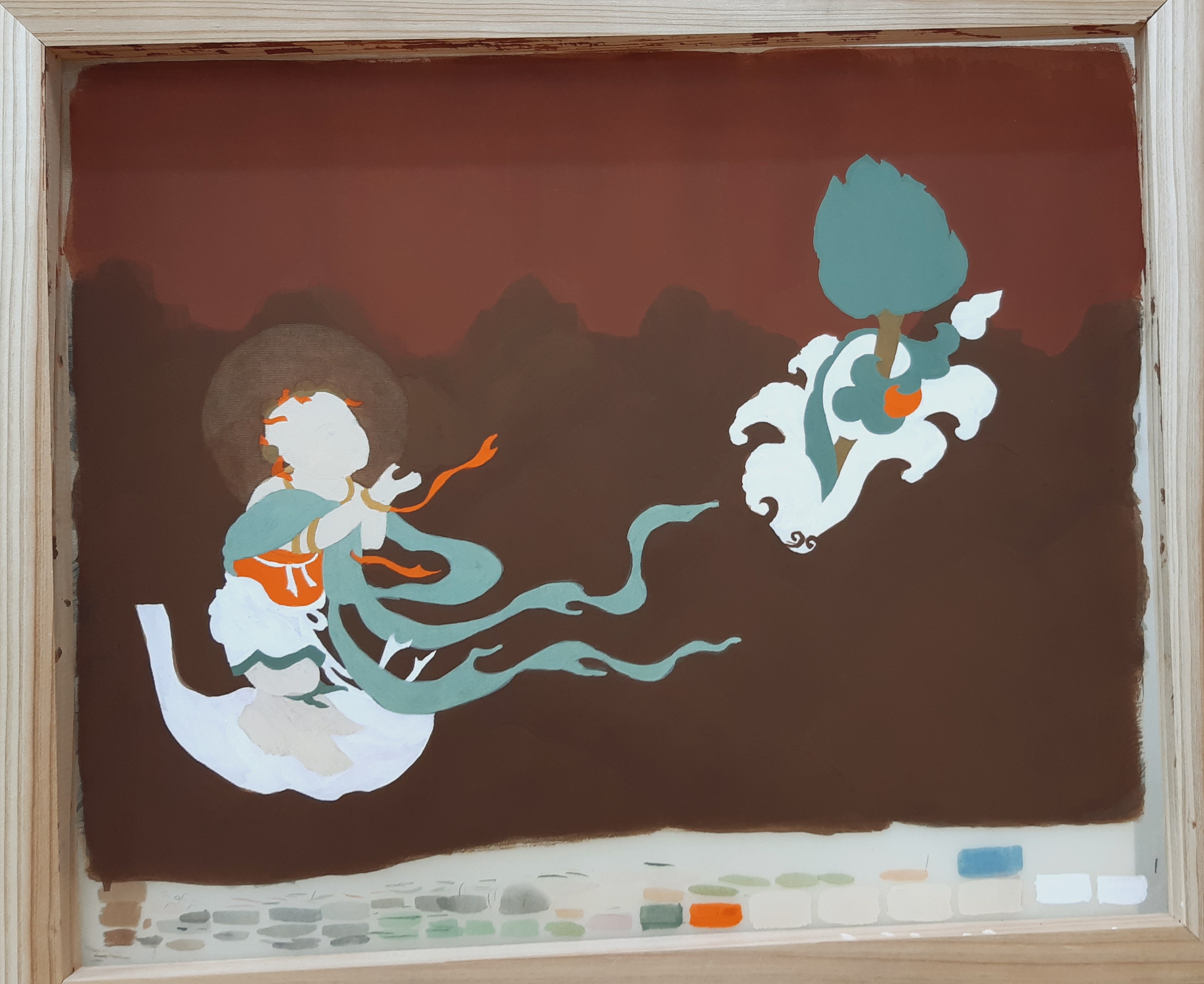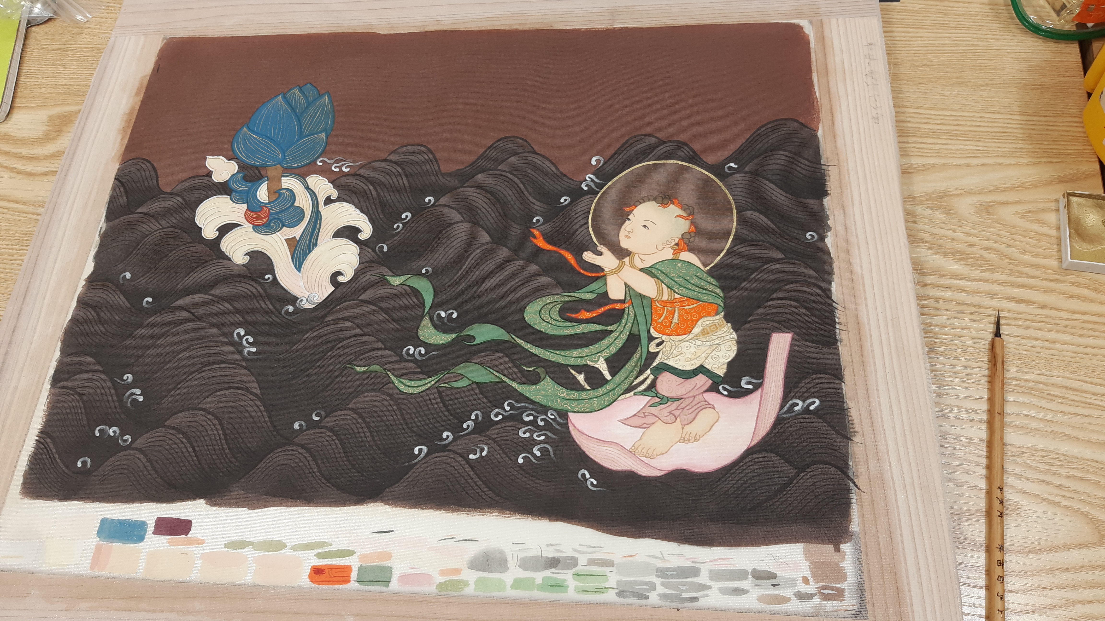 2배접 후에 가금으로 금 문양을 그렸습니다.