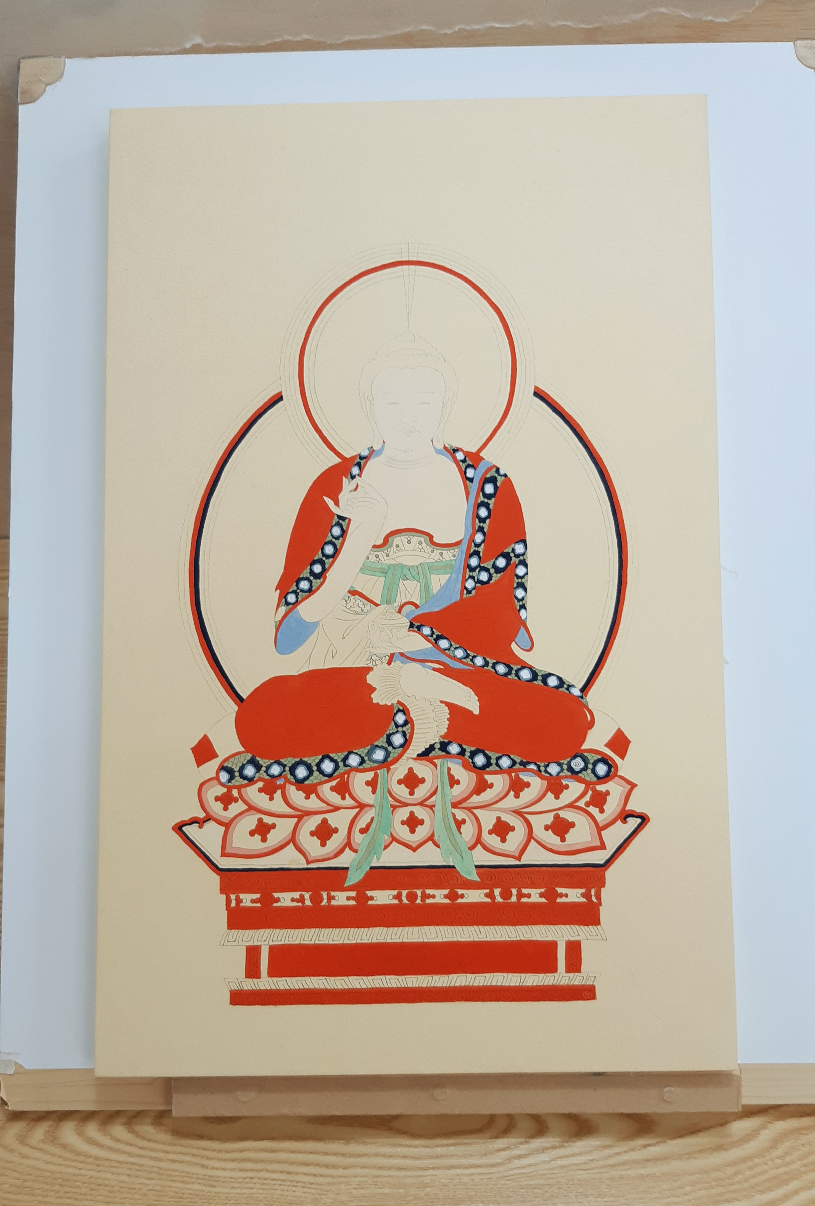처음 배우는 석채 사용법에 유의하며 채색해 나갑니다.