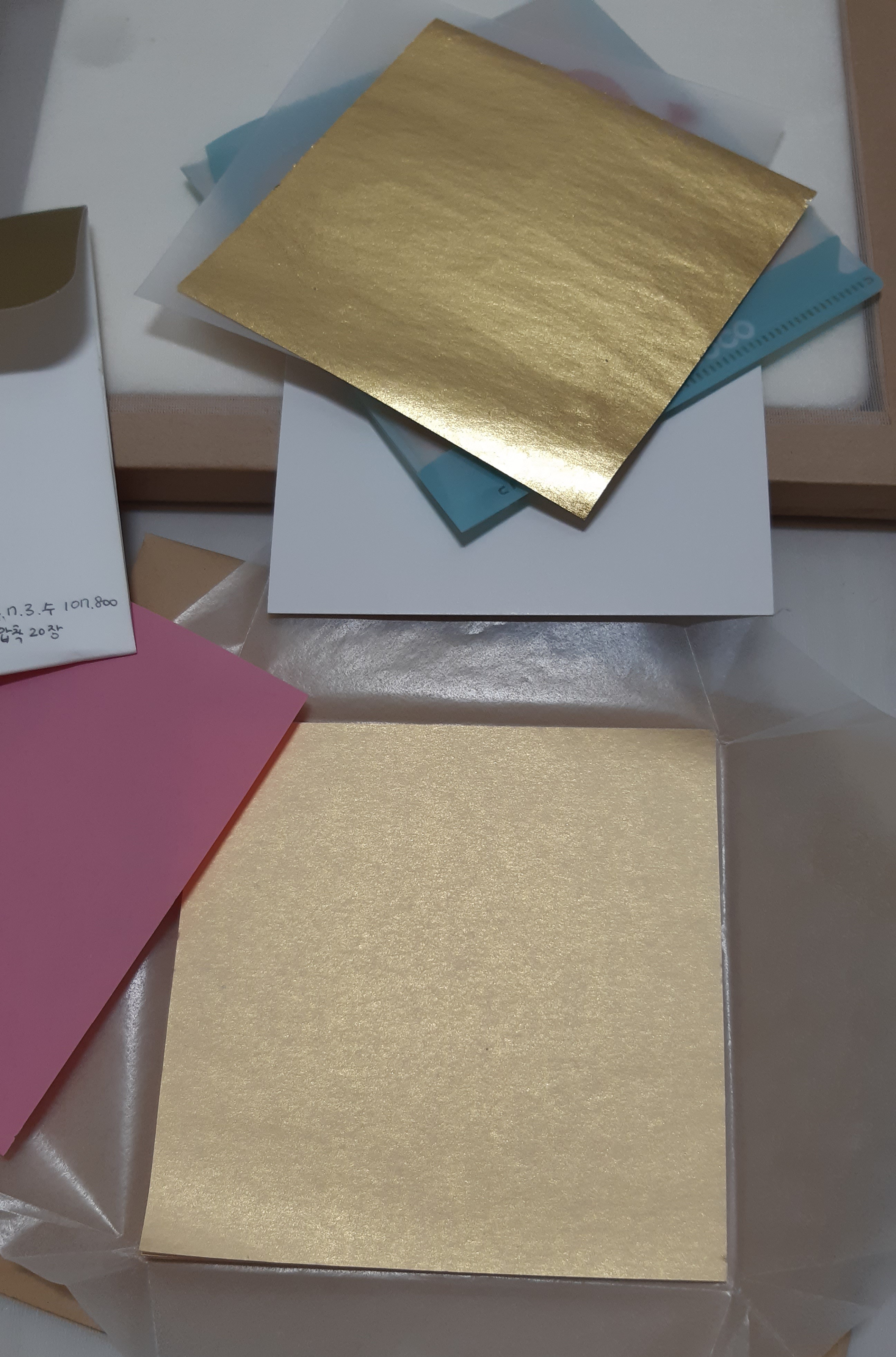 포장 종이를 열면 금박 위에 종이가 얹혀 있습니다.
