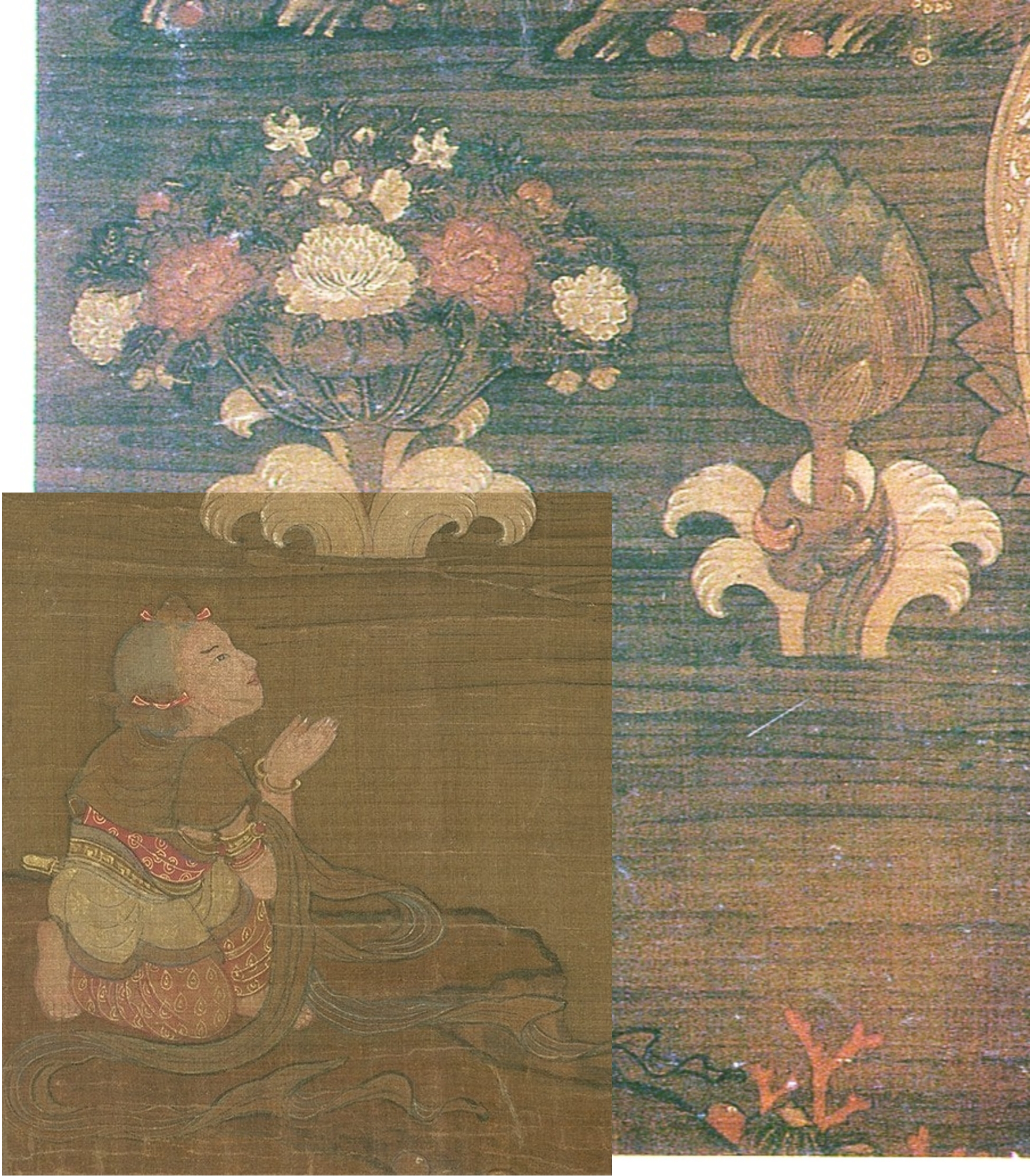 선재동자는 아이 인것 같으면서 어른 같기도 합니다. 이 그림을 주문한 귀부인 또는 재력가의 얼굴을 그려넣어 달라는 특별한 주문이 아니었을까 상상해 봅니다.