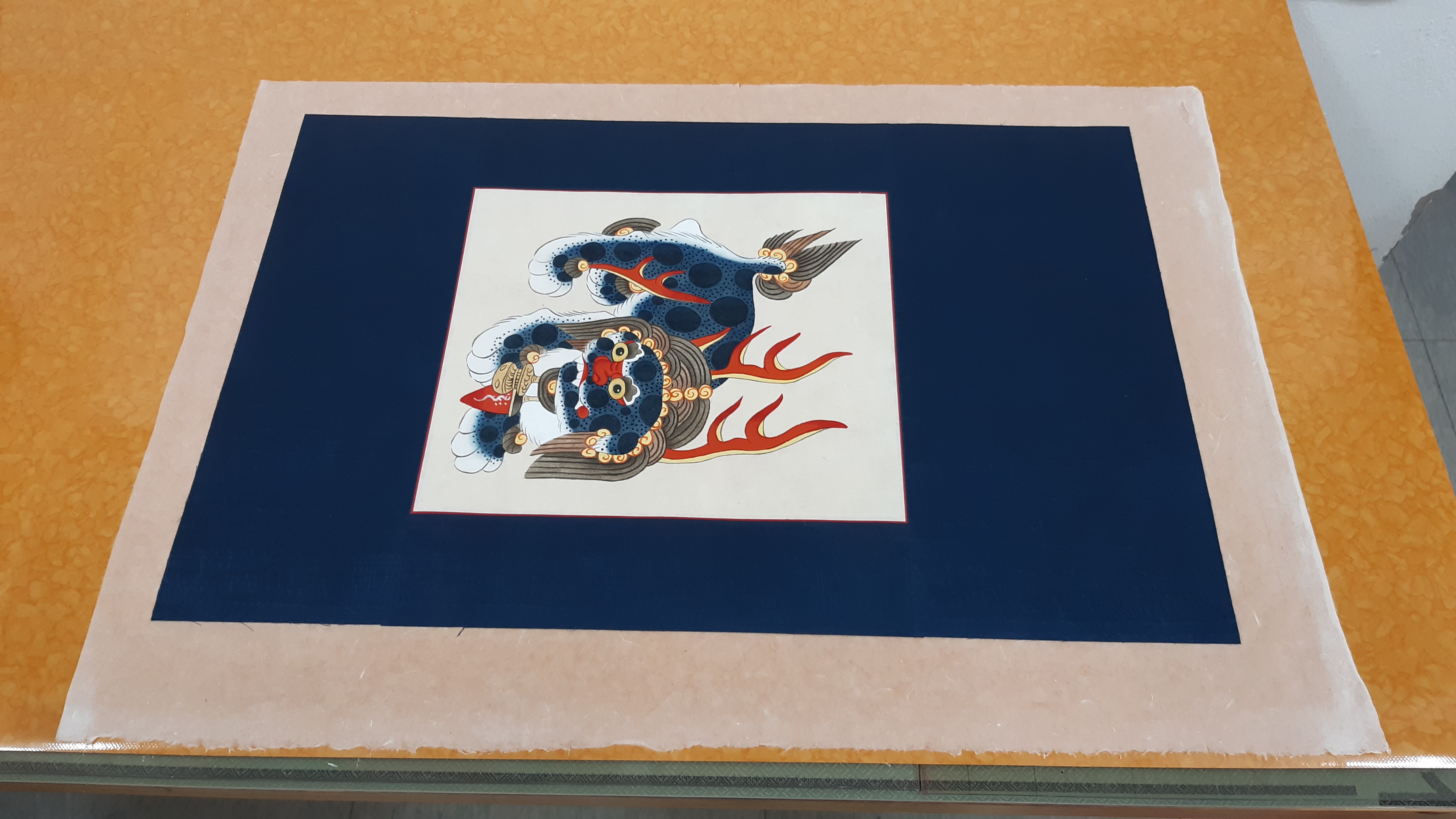 해태 그림도 중간배접을 하였습니다.