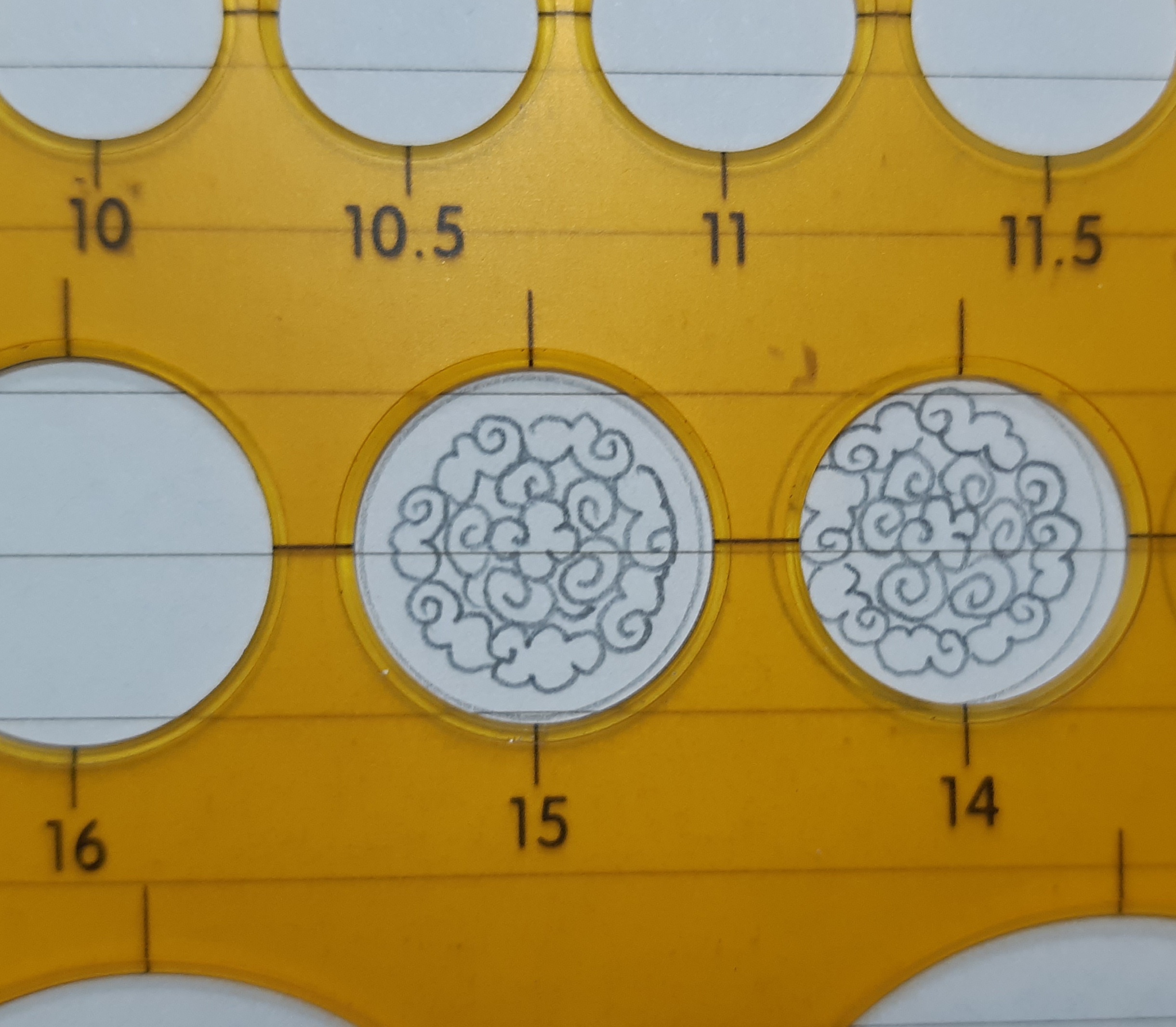 알맞은 크기의 원을 지름 15mm 로 그리기로 하고 연습을 합니다.