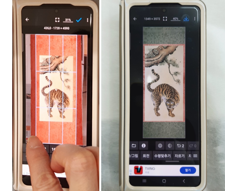 비단과 그림을 사진 찍어