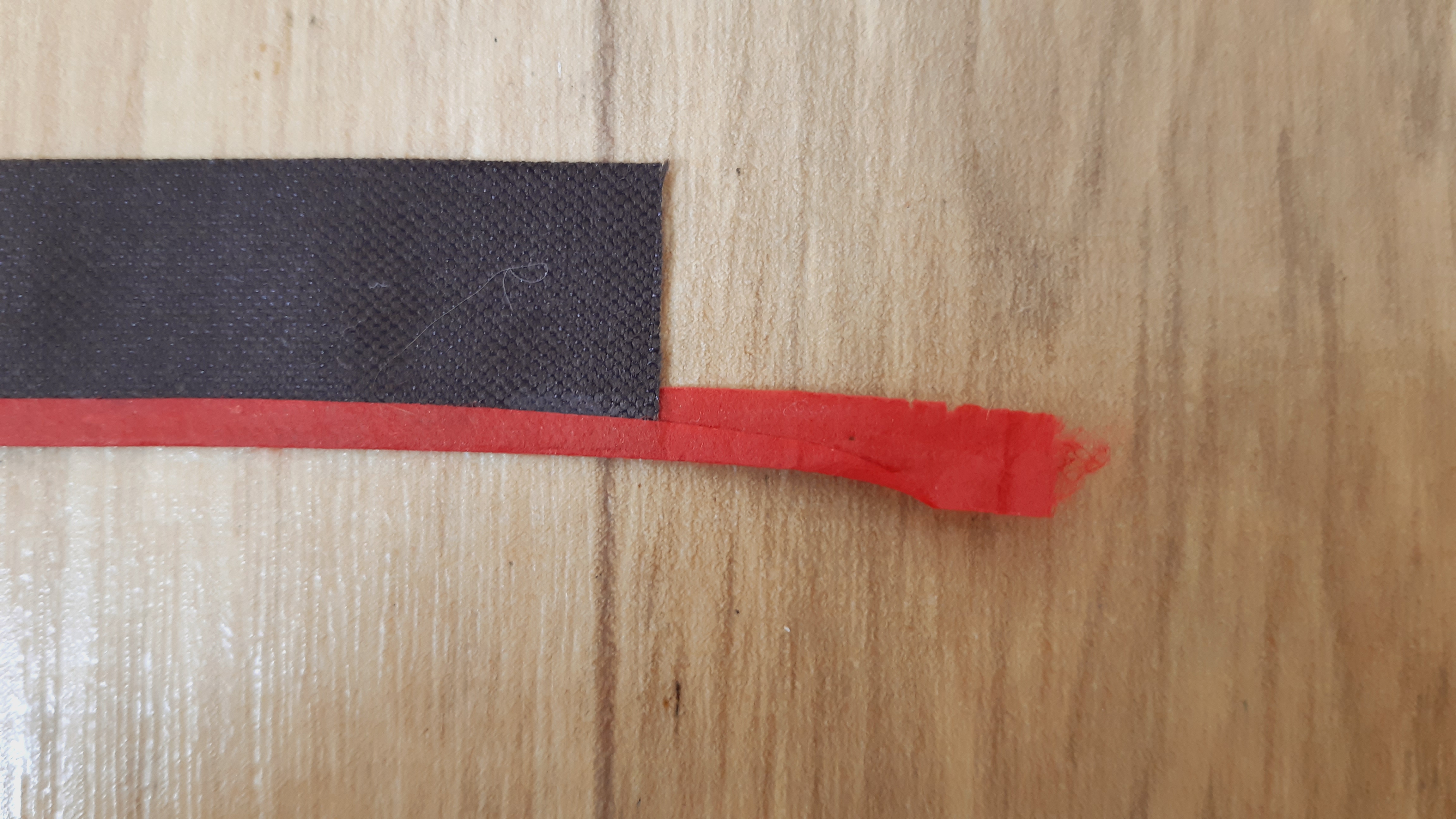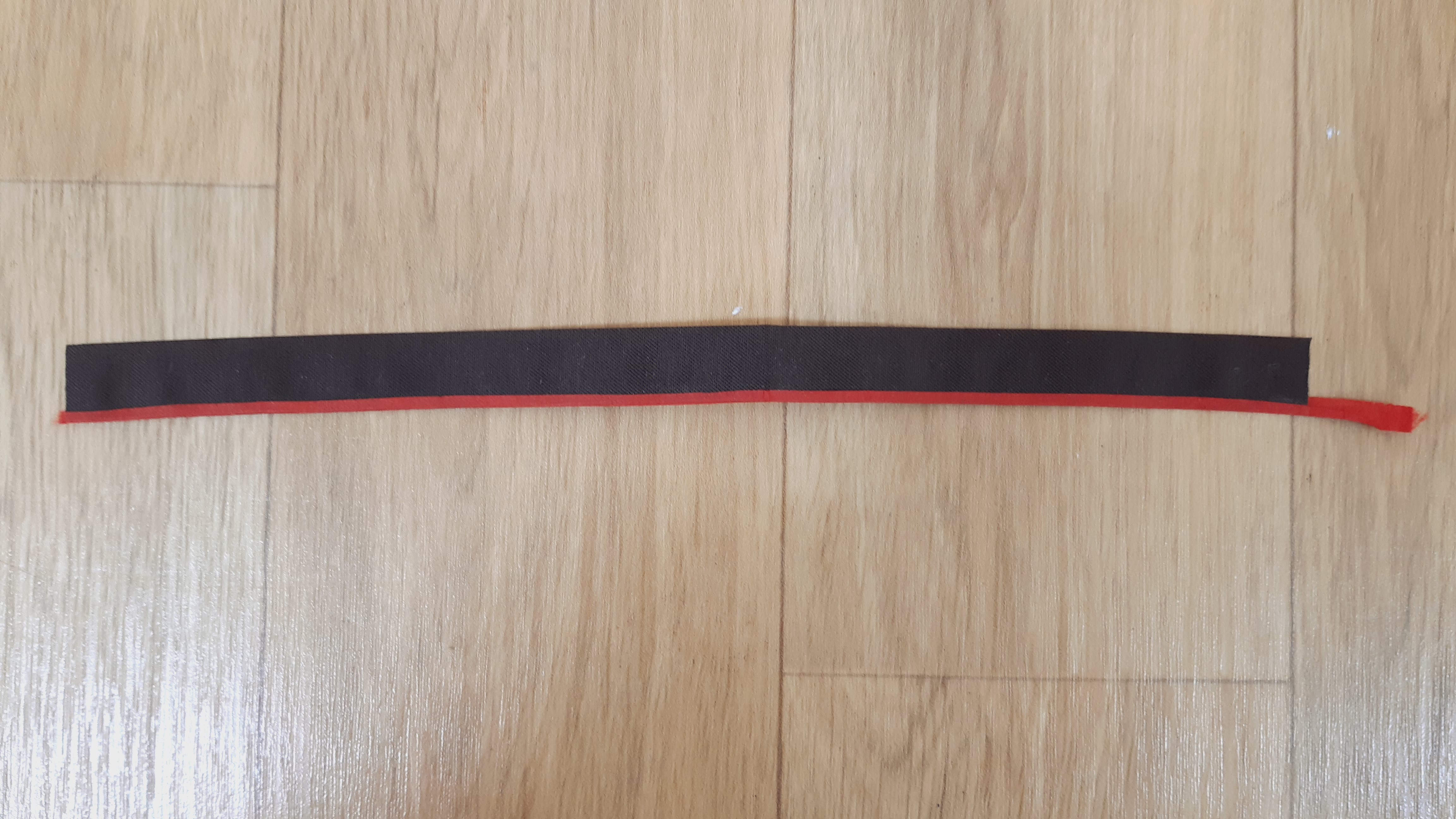 배접하지 않은 색지를 따로 8mm 폭으로 재단하여, 족자를 뒤집어 놓고, 옆면에 일부 붙입니다. 앞면에 일정한 폭이 보이도도록 아크릴 자로 자른 후 접어서 풀칠하여 앞면에 붙입니다.