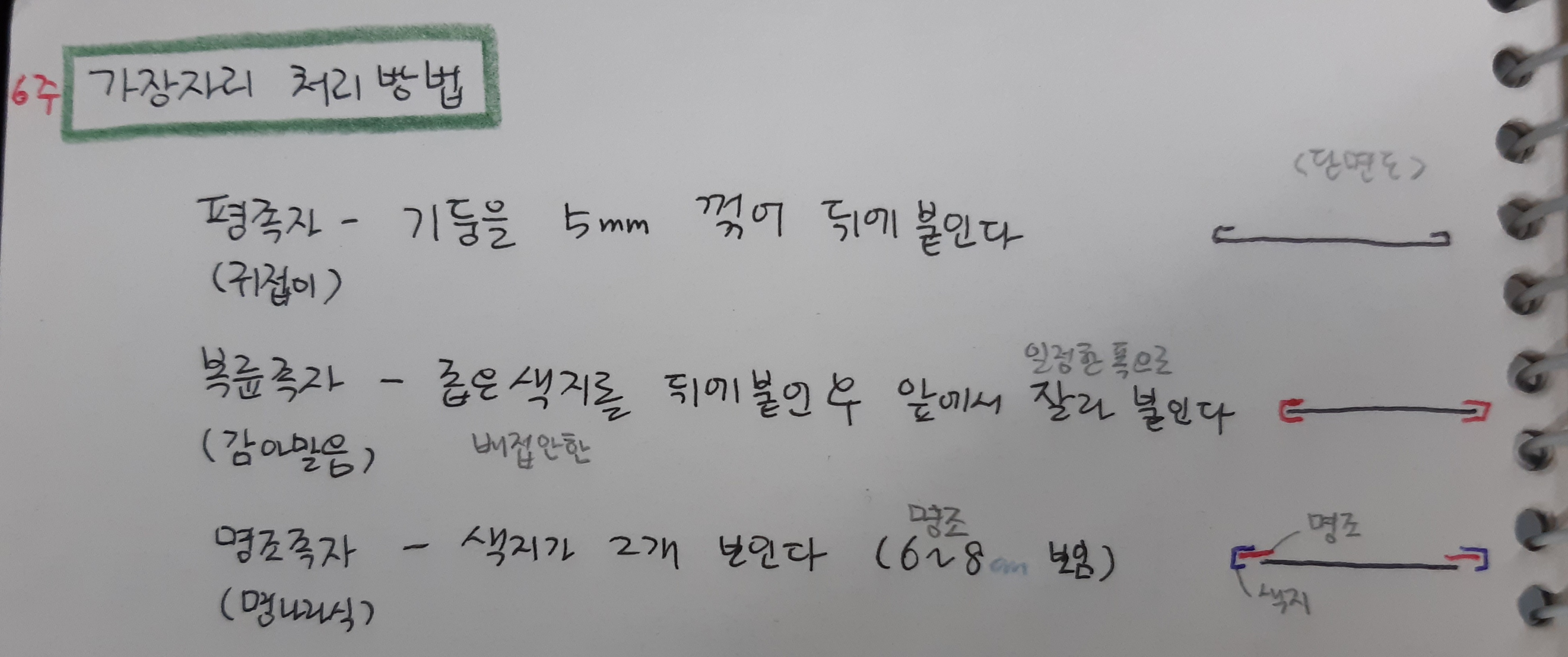 뒤집어 놓고, 가장자리 폭 4~5mm 정도가 접히도록 대칼로 금을 그어 접어, 풀칠하여 붙입니다.
