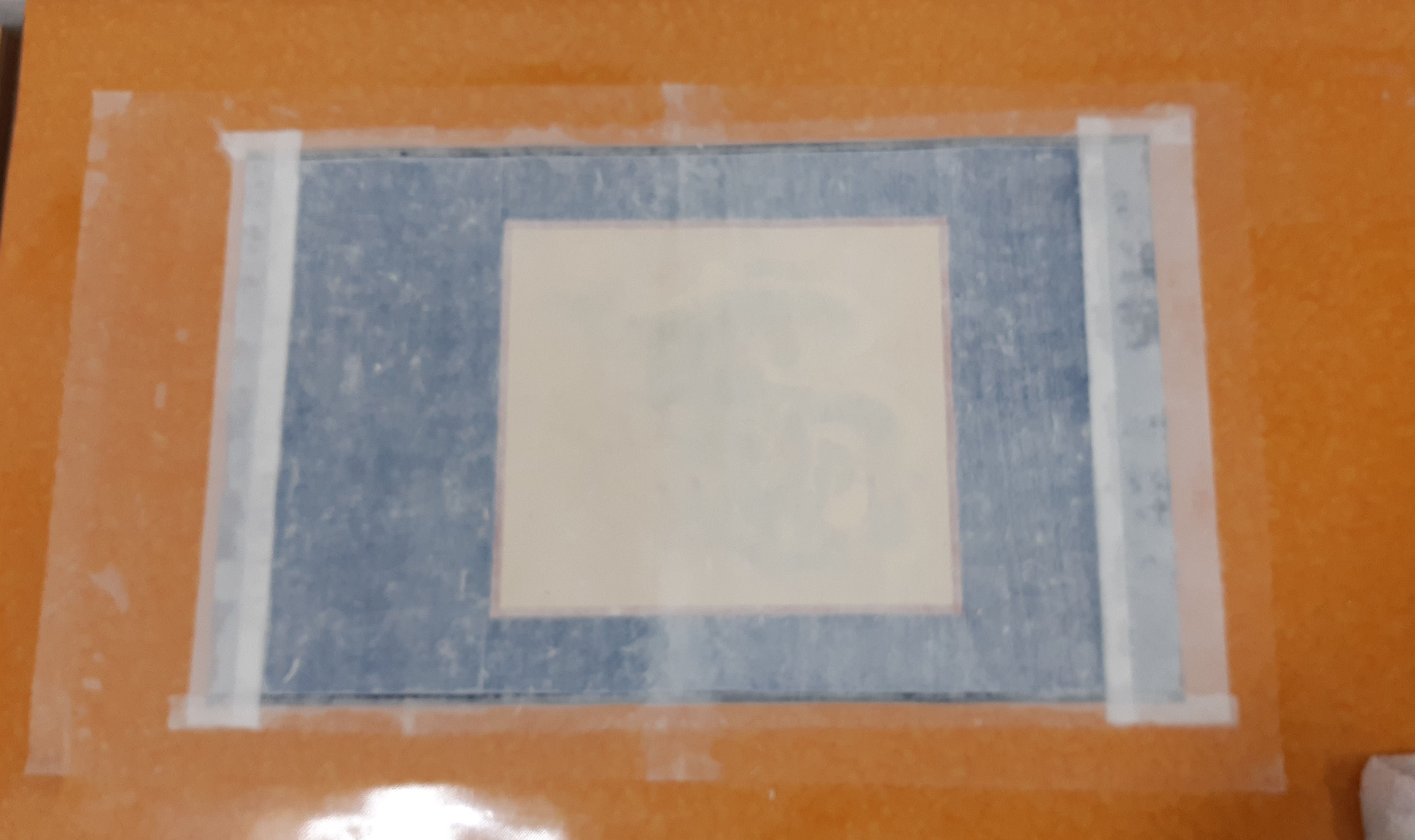 배접지 2장을 엇결로 재단하고 연접 준비를 합니다.