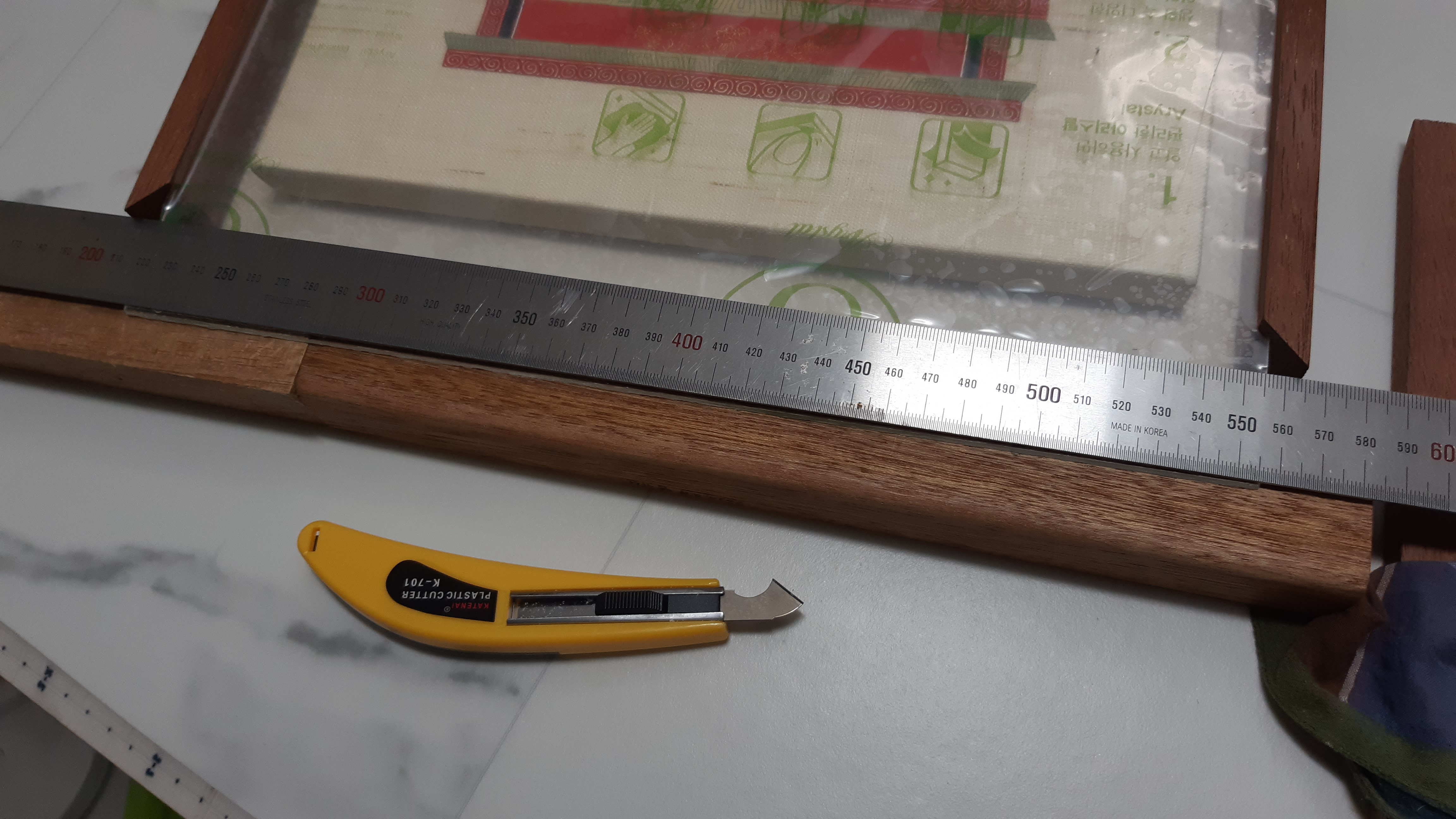 뒷판이 좀 짧은 것 같아서 1mm 길게 재단을 의뢰했더니 길어서 1mm 를 잘라내야 합니다.