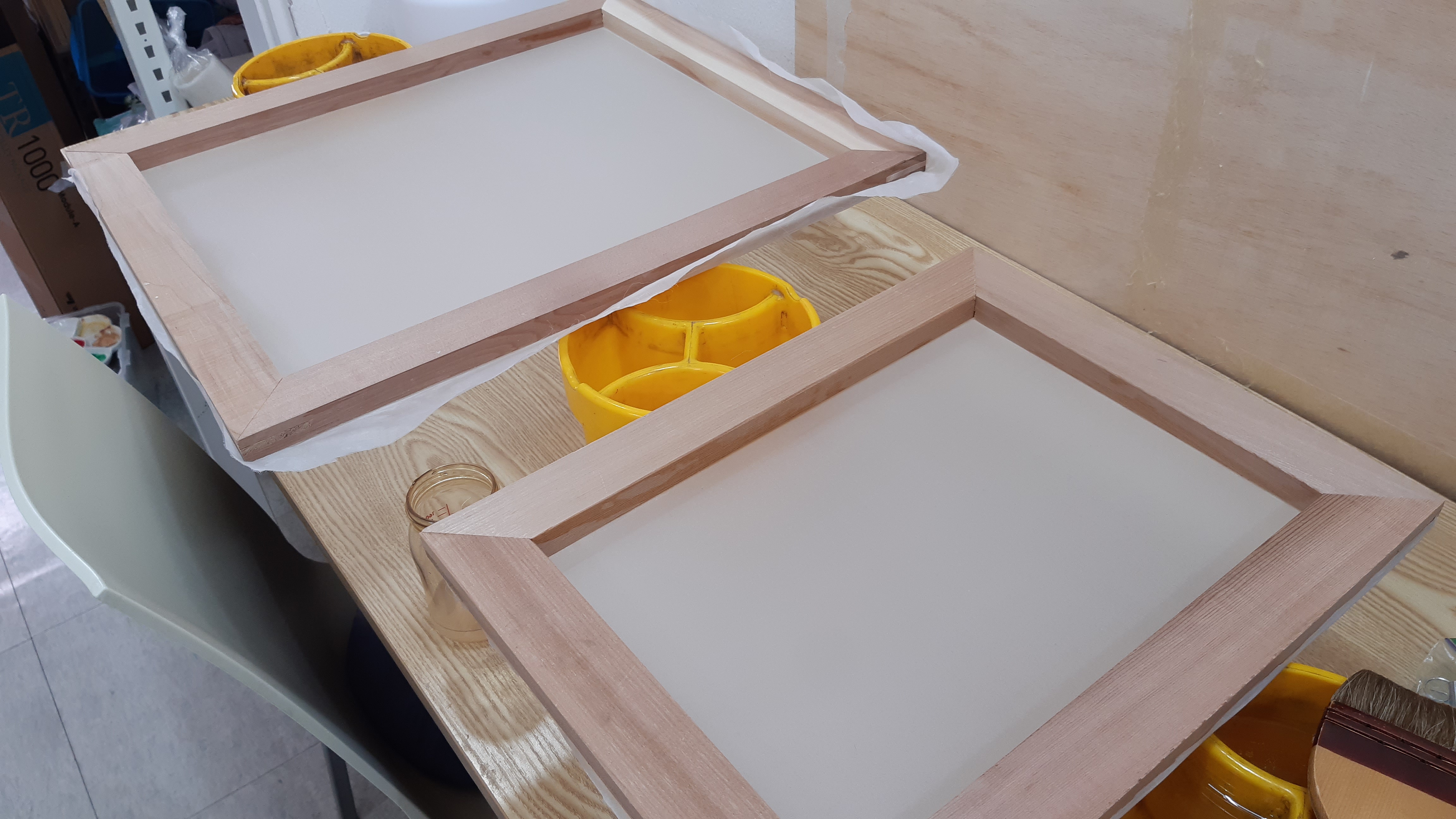 10호와 6호 견틀을 구입한 후 비단을 붙였습니다.