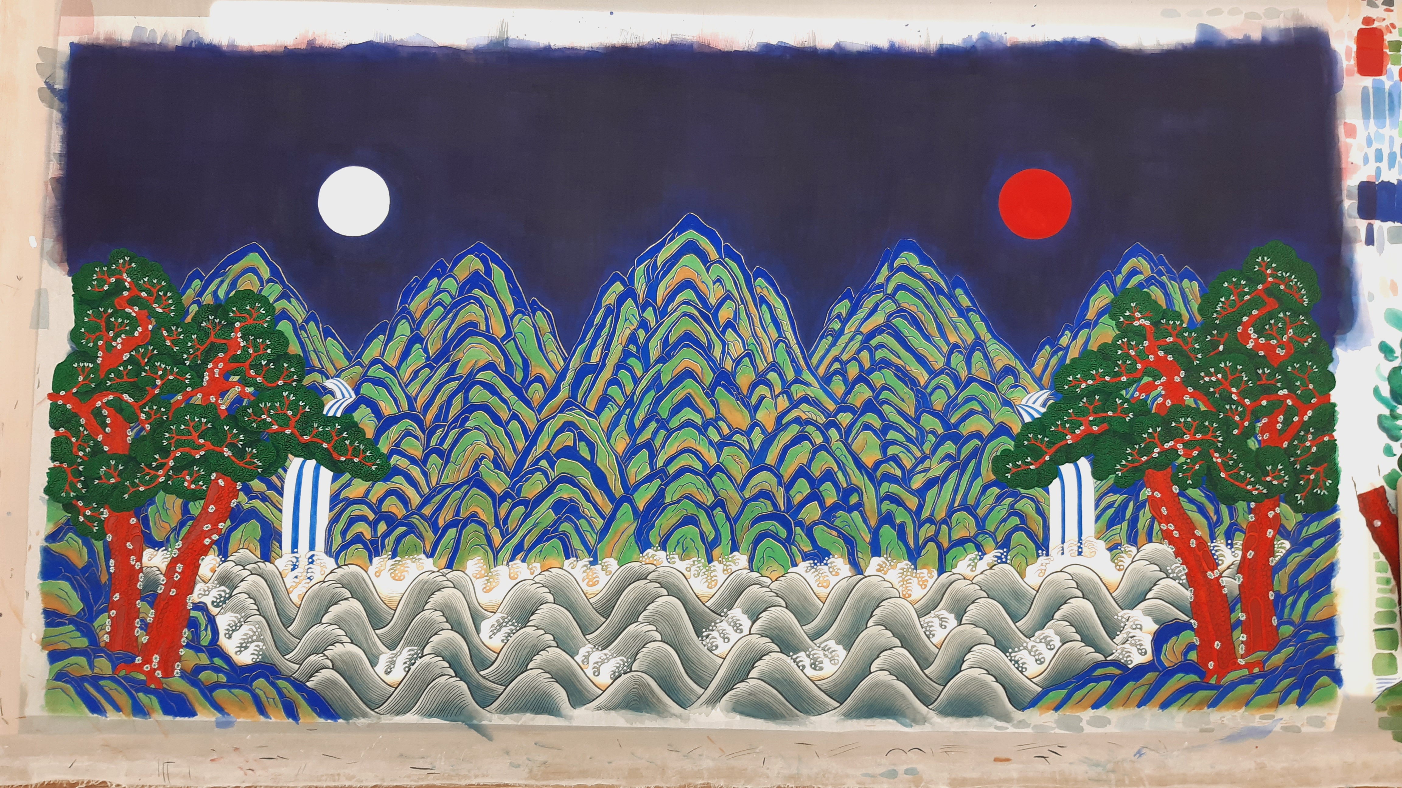 원화를 보고 그릴수 없으므로 옛날 그림을 많이 본 경험으로 색을 해석해야 합니다.