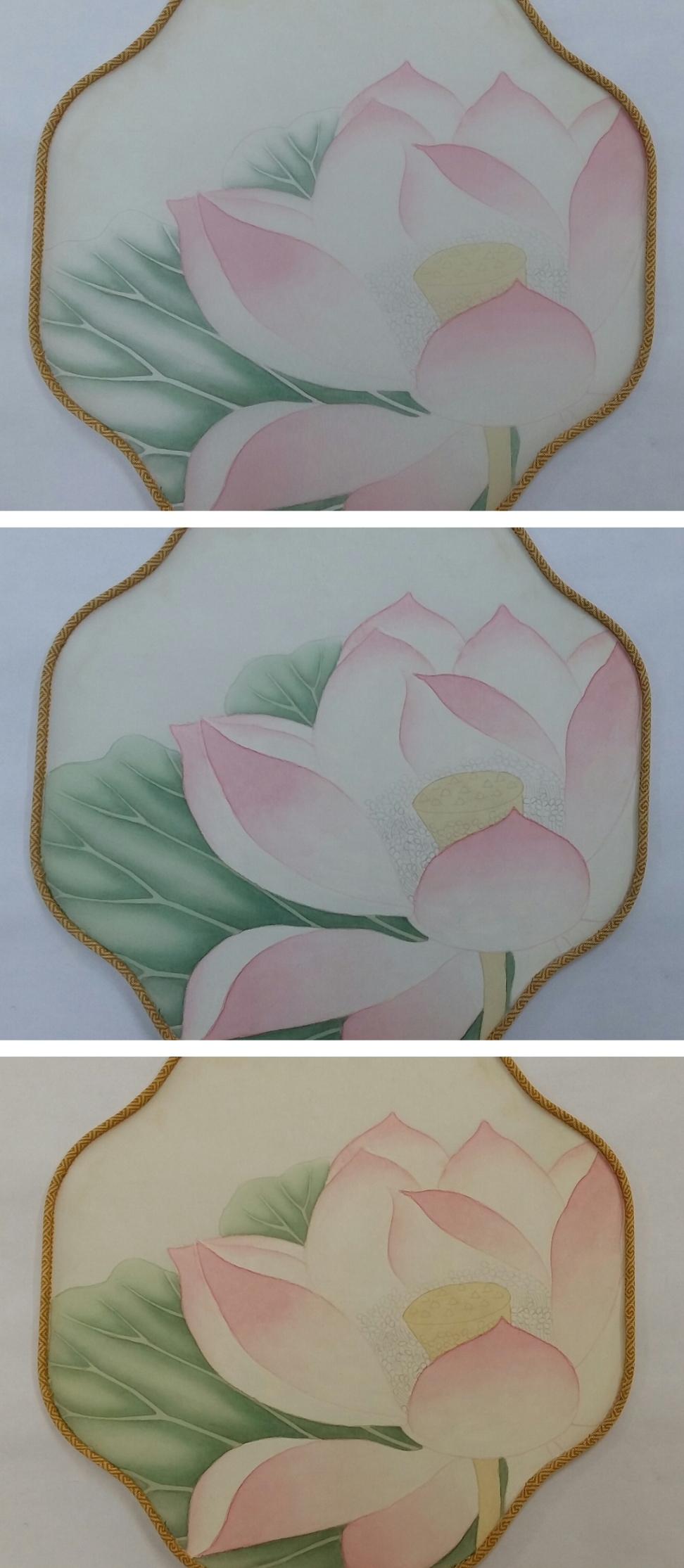 부채비단이 너무 얇아서 채색이 어렵습니다.