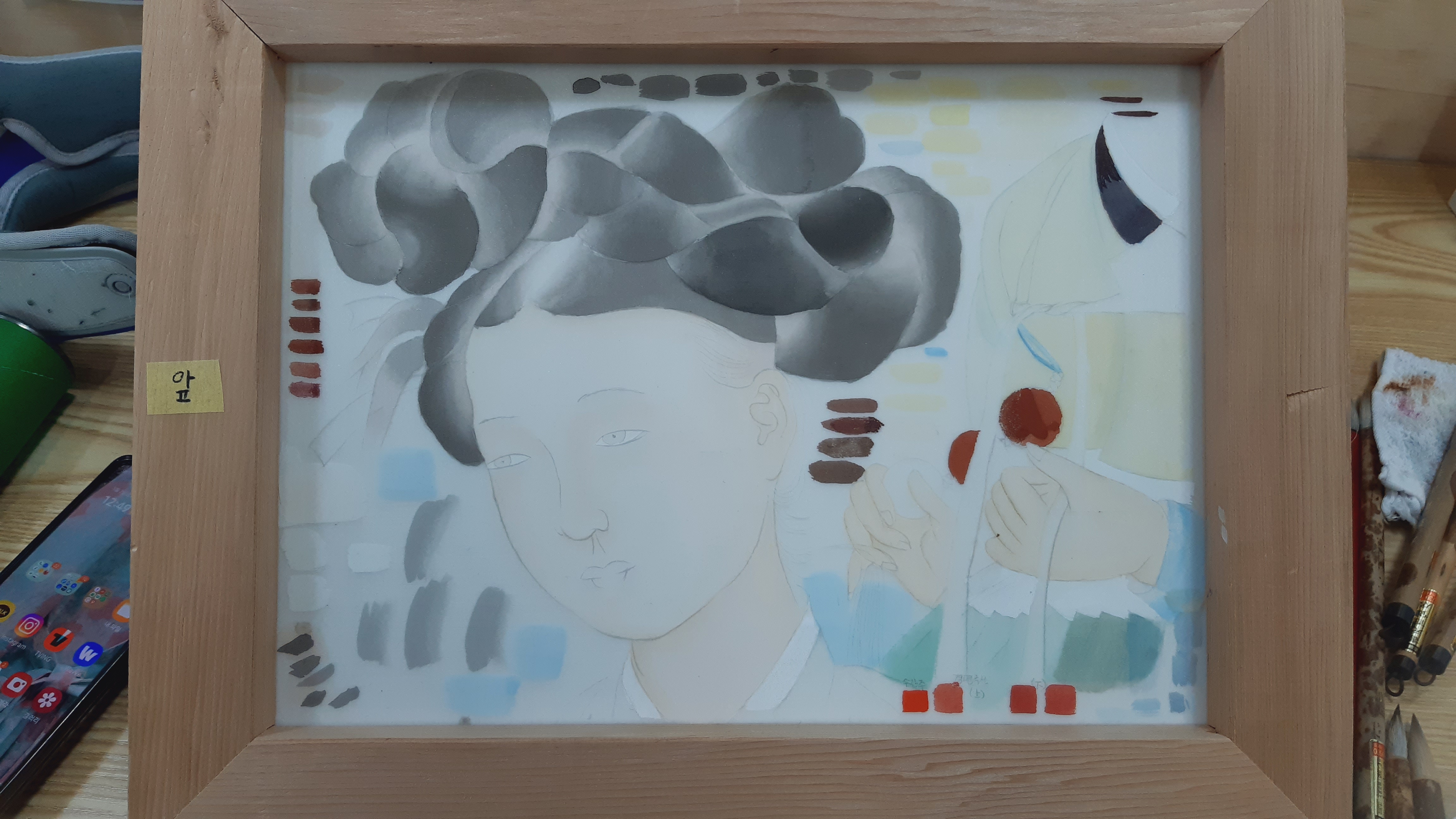 아래 그림을 그리신 분은 다음주에 꽃바림을 추가한 후에 배접을 할 예정 입니다.