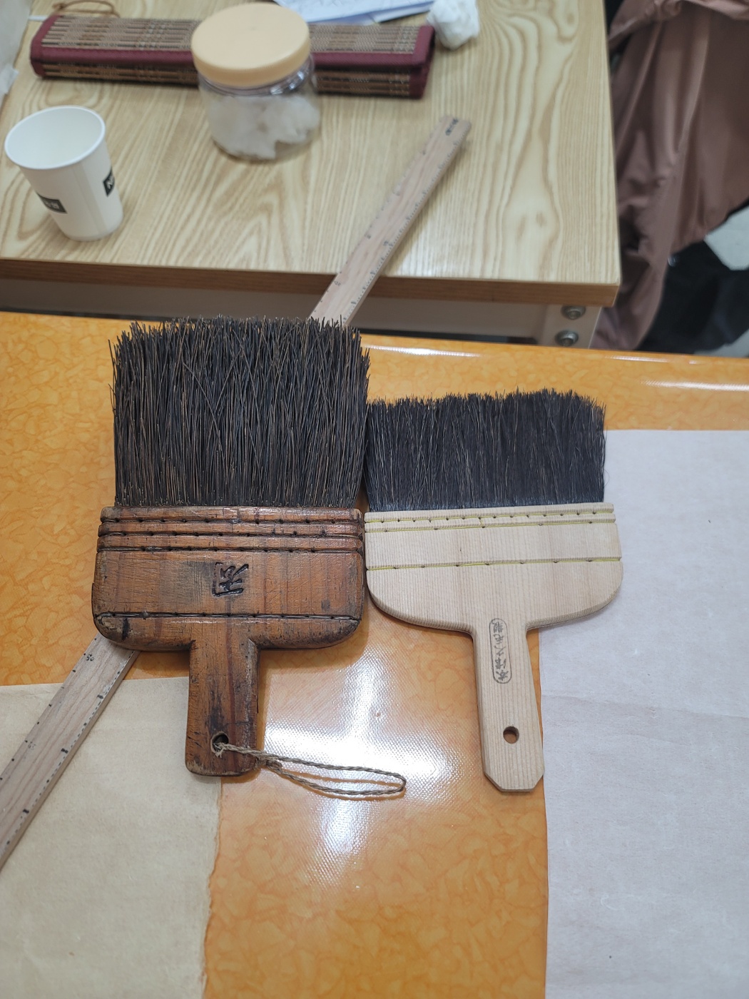 우리나라의 옛날 다짐솔(타솔)과 일본제 종려나무 섬유로 만든 마무리솔