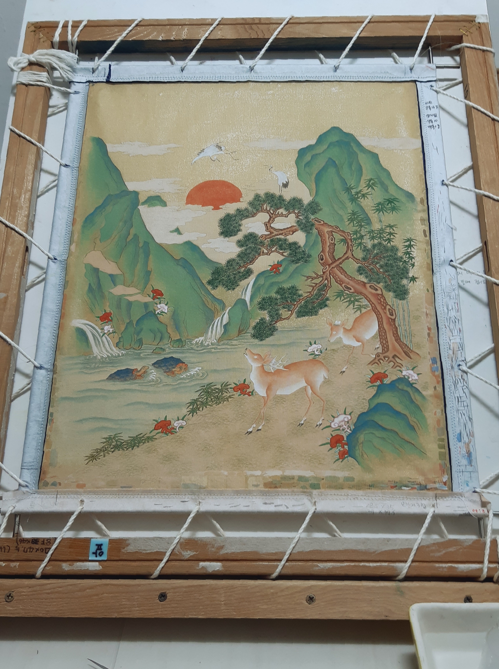작은 십장생도 배접 후