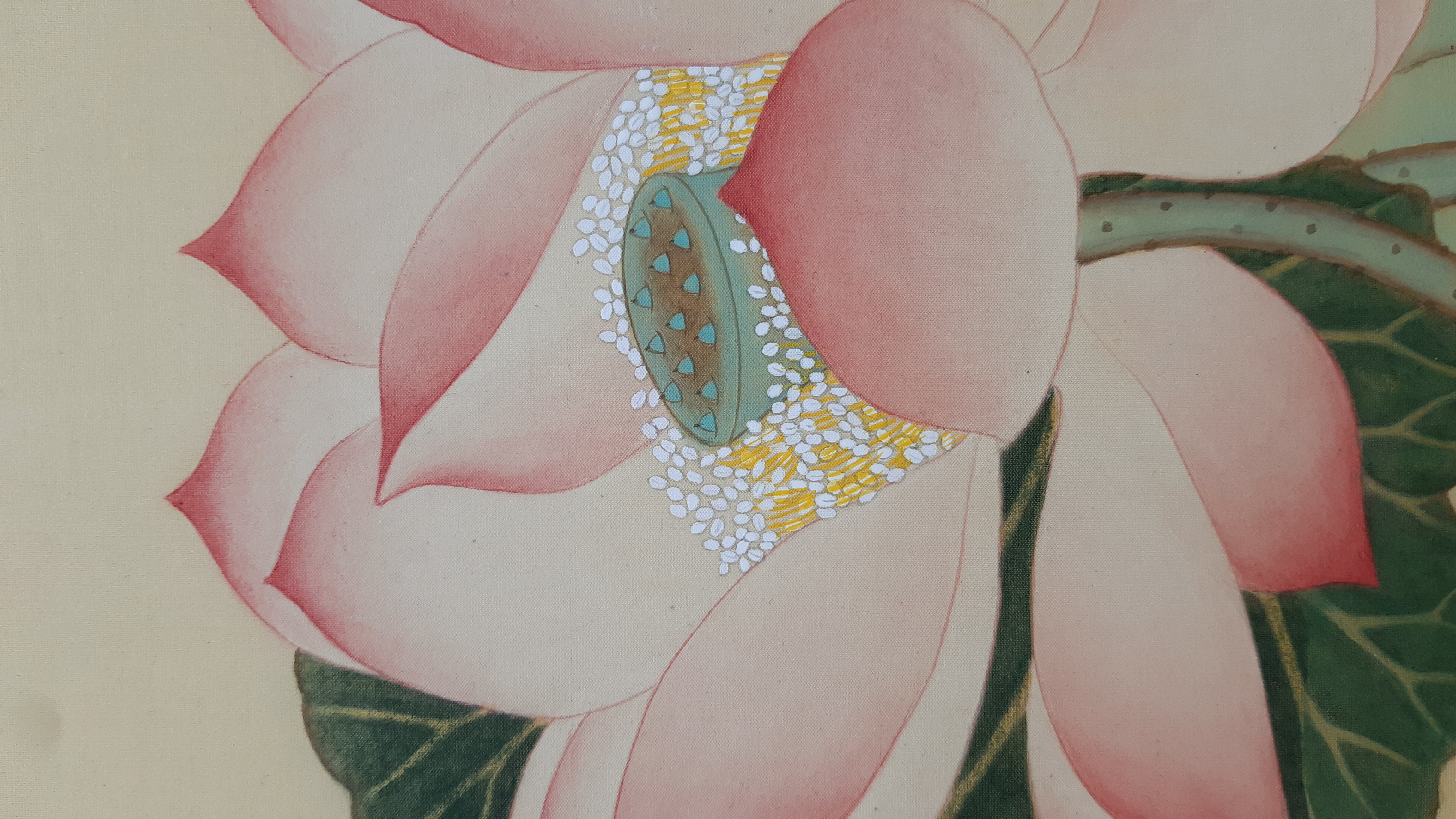 그림을 그릴 때 아교를 정확히 사용하여 석채가 하나도 떨어지지 않았습니다.
